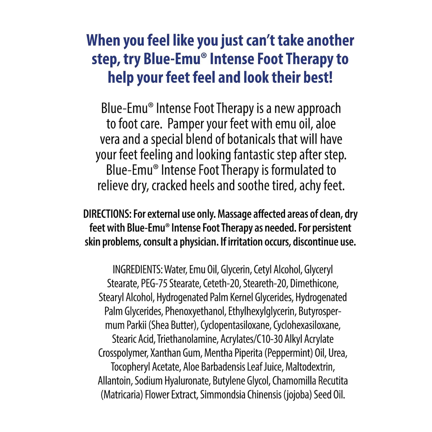 BLUE-EMU Intense Foot Therapy Cream for Dry Skin and Tired Feet - 5oz