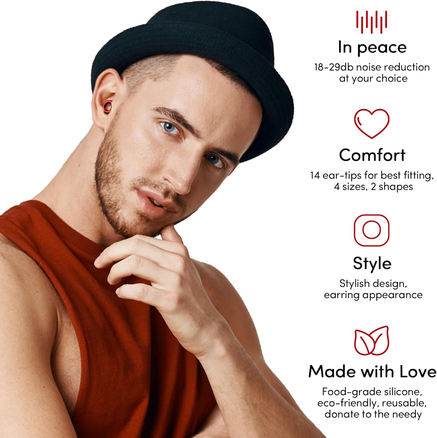 Audree Style Ear Plugs for Noise Reduction, Reusable High Fidelity Earplugs for Concerts, Musicians, Motorcycles, Study, Parent, Party, Flights & Noise Sensitivity, 18-29dB Noise Cancelling (Red)