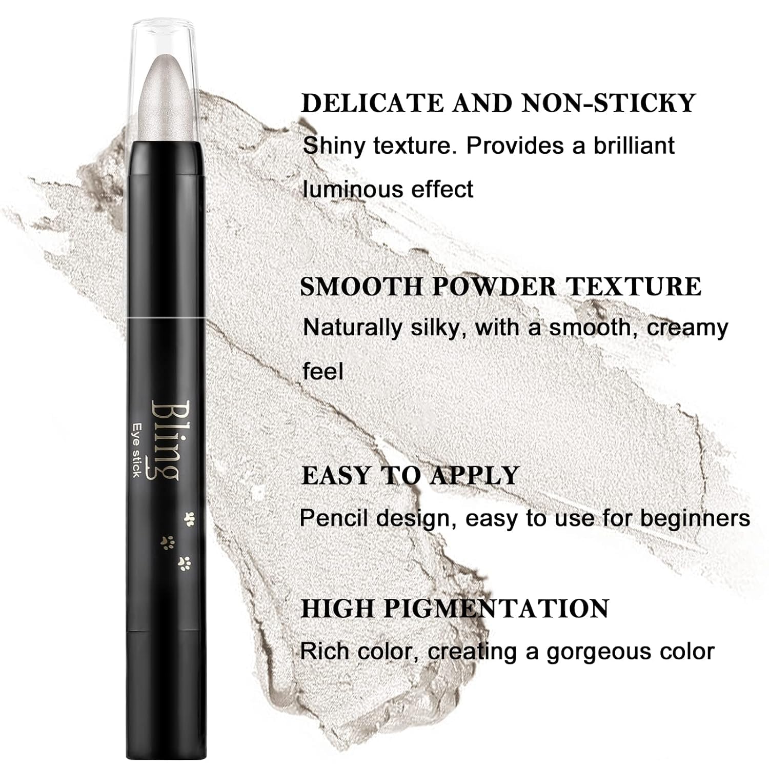 - Eye Highlighter Stick: Glitter Eyeshadow Pen has a shimmer color. You can easily apply a gradient look with it. Multiple colors for you to choose from to create different eye makeup.