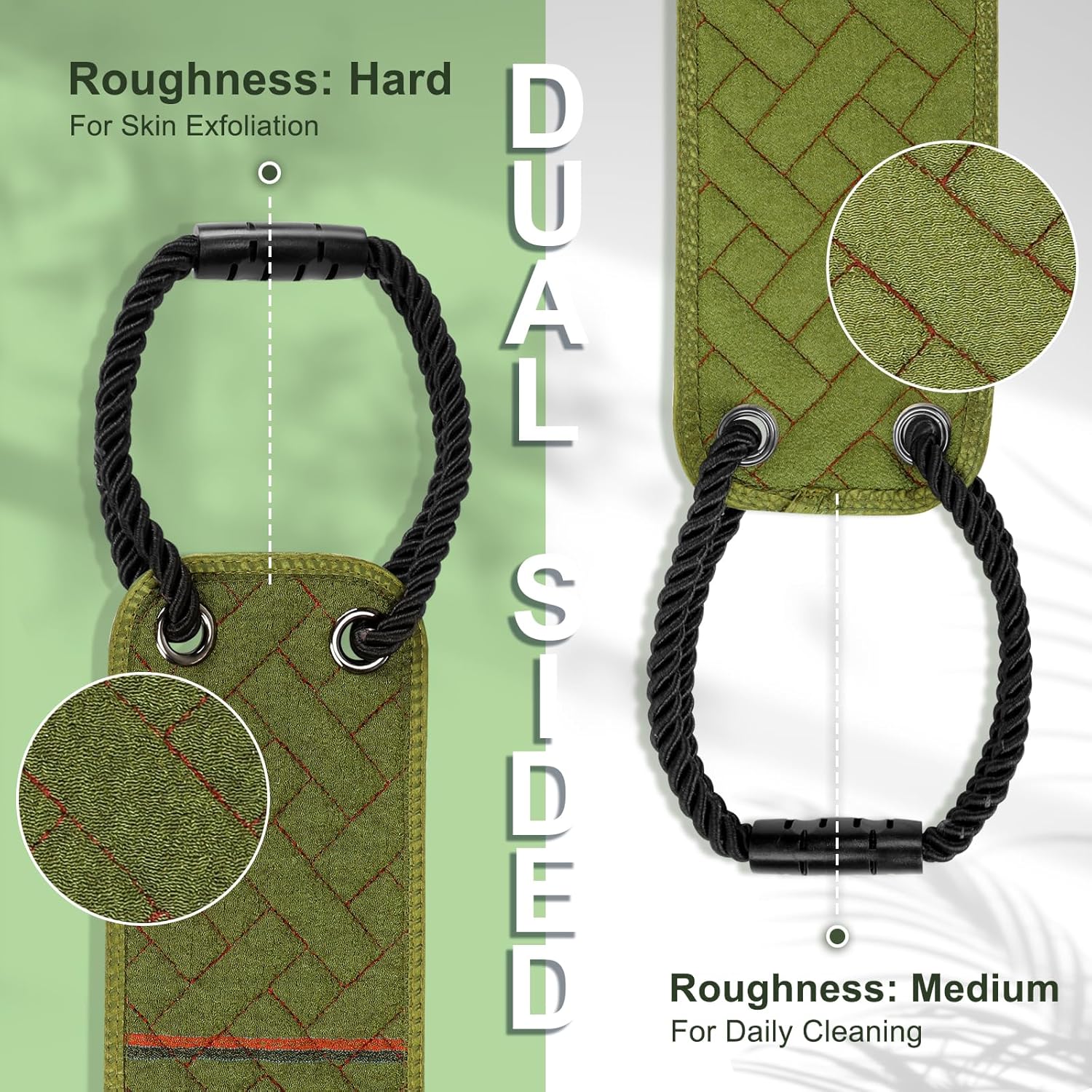 - 【Double-Sided Textures】If you're looking for rough exfoliating tools, you can't miss it! The special concave and convex textures are designed for the back skin. Two levels of roughness for all your bathing needs. Yes, there's no such thing as soft. You'll soon feel the difference.