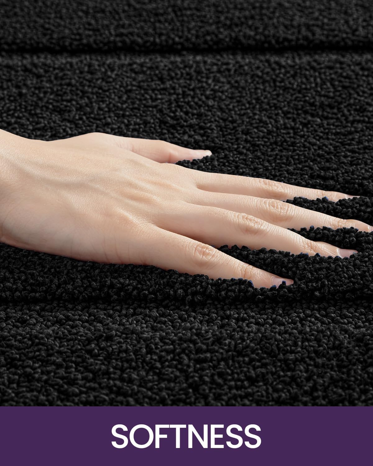 DEXI Bathroom Rugs 43x24, Washable Non Slip Bath Mat for Shower Floor, Absorbent Quick Dry Bathmat with Rubber Backing, Ultra Soft Plush Carpet for Tub, Black