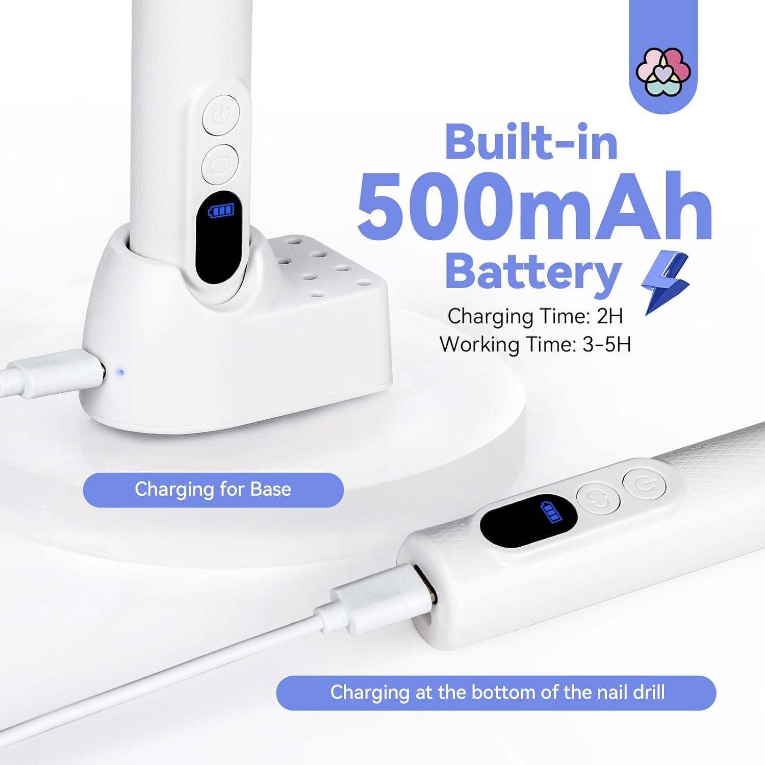 - Easy to Use & 2 Ways of Charging: Saviland nail files for acrylic nails is completely to use, charging for use without any restrictions. Electric nail drill machine has 2 ways to be charged: either place it on the charging base or connect the charger directly to the drill itself. And also can be plugged and used at the same time.