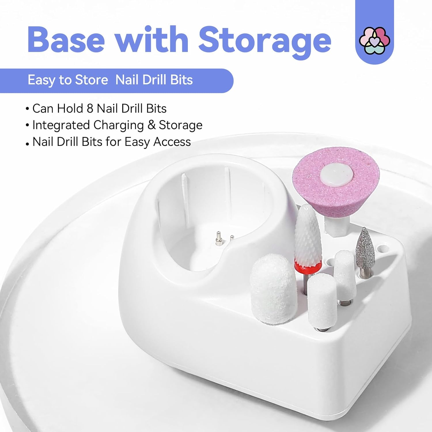 - Storage Base & 3 Modes Speed Adjustable: Saviland electric nail drill comes with a storage base, can be charged and store 8 nail drill bits. With 3 adjustable modes ranging from 0 to 20000 RPM (Rotations Per Minute), our nail drill allows you to customize the speed based on your specific needs.