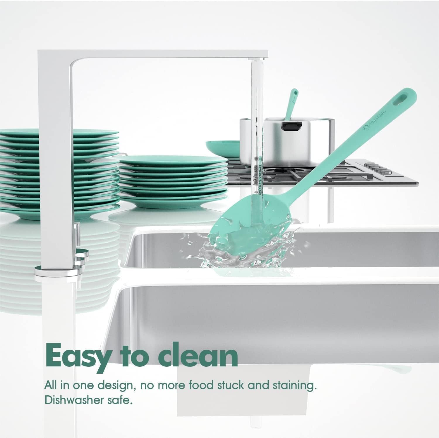- One-Piece for Easy to Clean: With the unique Seamless One Piece Design, there is no crevices for food to stuck in, the handle will never enter the water. It is very easy to clean and dishwasher safe