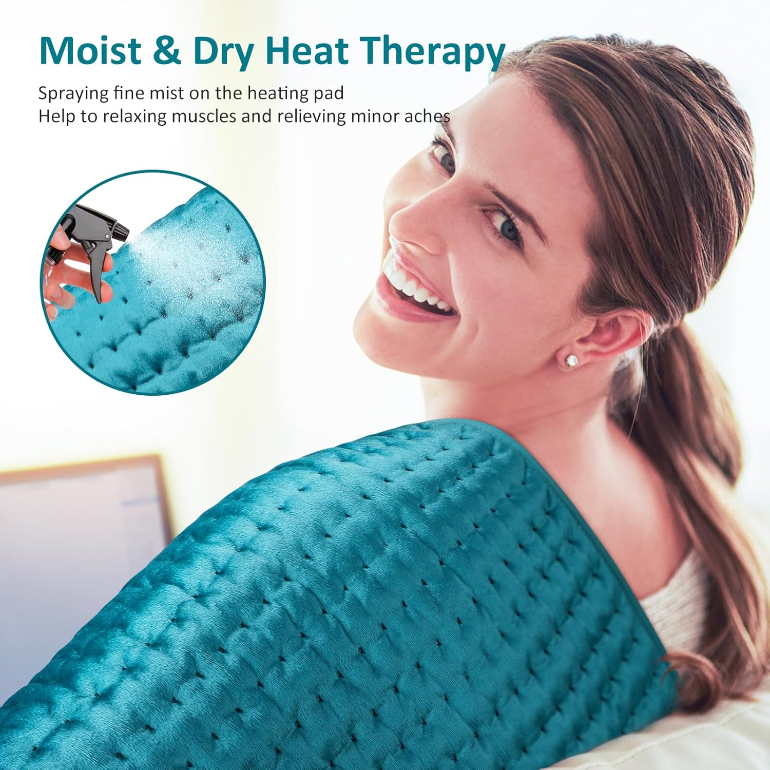 Electric Heating pad for Back/Shoulder/Neck/Knee/Leg Pain, Cramps and Arthritis Relief, 6 Fast Heating Settings, Auto-Off, Machine Washable, Moist Dry Heat Options, Extra Large 16"x30"