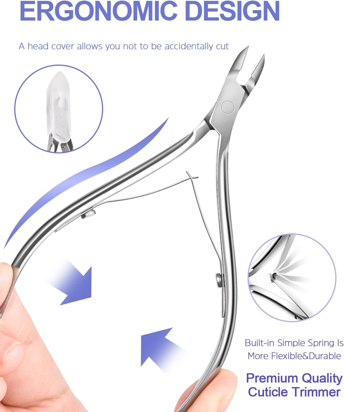 - Cuticle Trimmer Set: The stainless steel cuticle clippers for nails are sharper and more efficient for a long time, making sure that the cuticles are easily removed. Other 4 pcs manicure tools help you reach nail edge more easily to remove the stubborn debris effortlessly