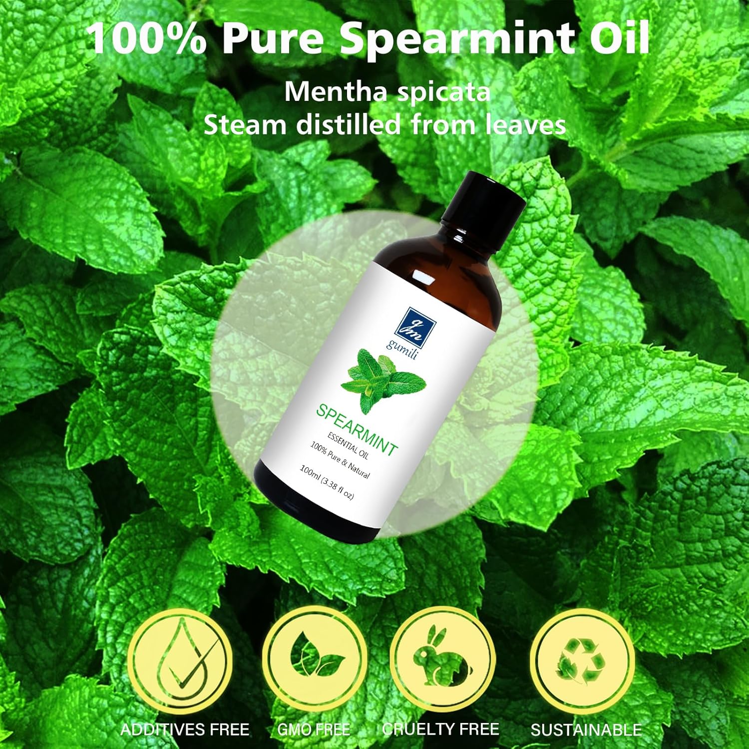Spearmint Essential Oil, 100% Pure Undiluted Spearmint Oil for Skin, Hair, Aromatherapy - 100ml/3.38 oz