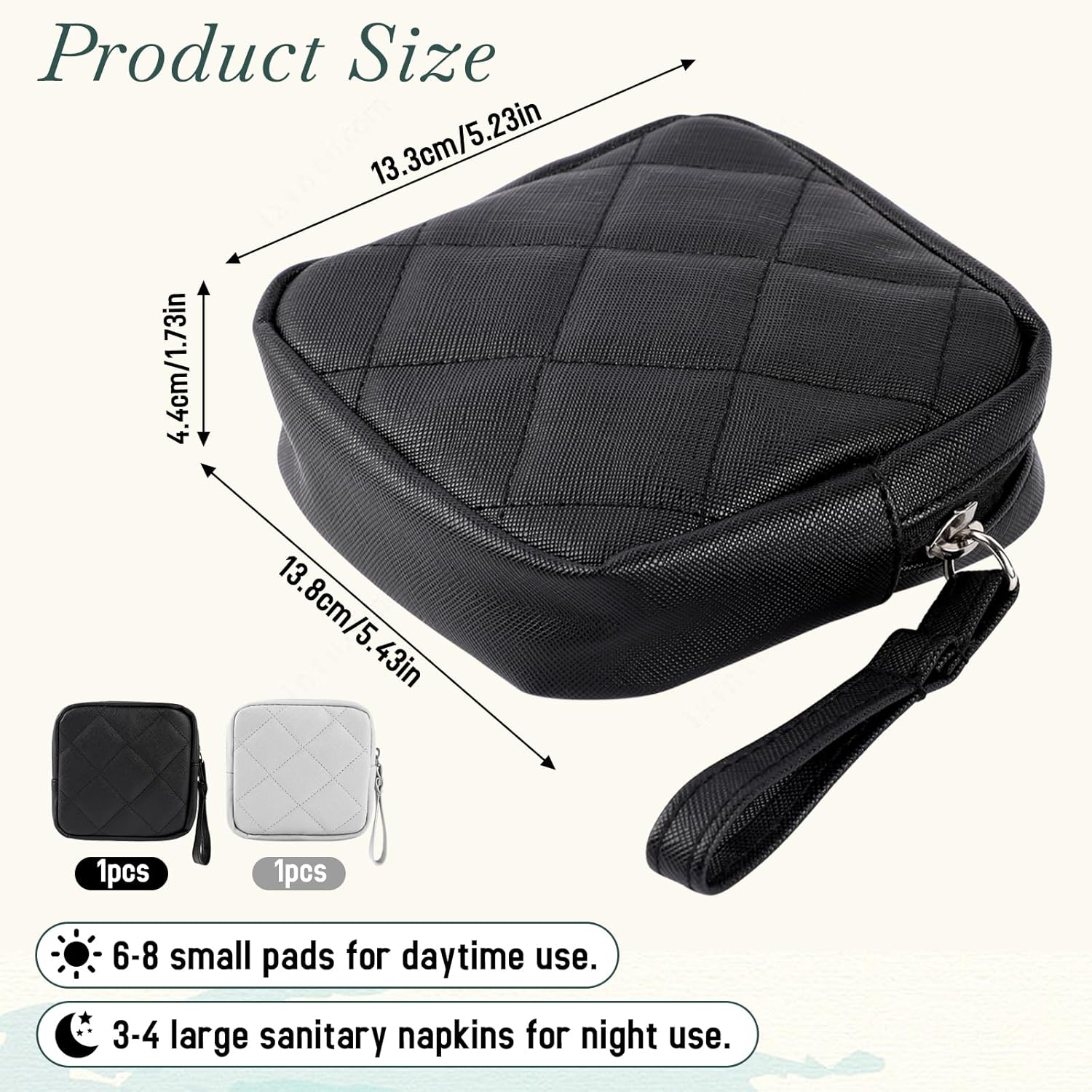 - 【Size Information】The size of the sanitary napkin storage bag is 5.1*5.1*1.57 inches, each bag can hold 6 to 10 pieces of daily sanitary napkins or 3 to 4 pieces of nighttime sanitary napkins, and is easy to carry and use, it can be easily placed in a backpack or handbag.