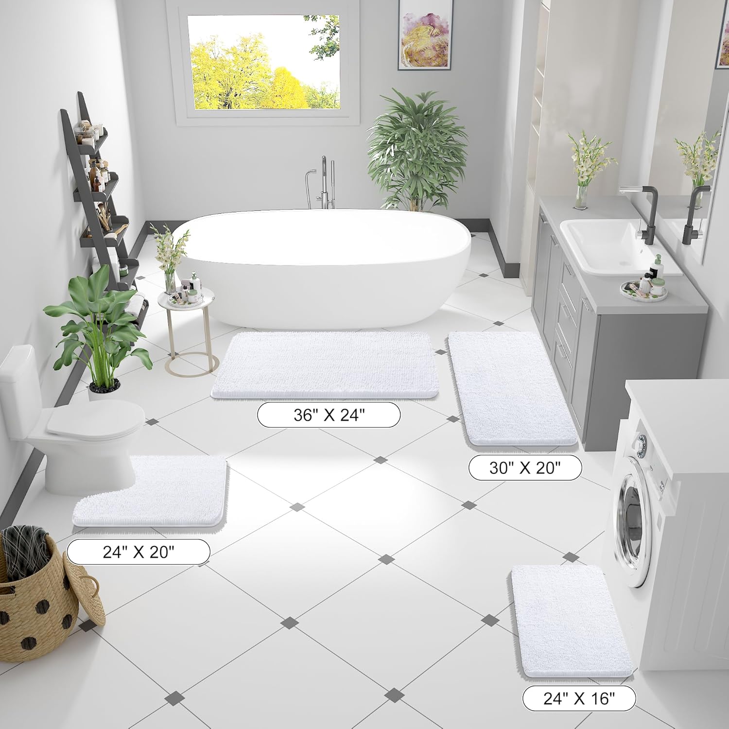 OLANLY Bathroom Rugs 36x24, Extra Soft Absorbent Chenille Bath Rugs, Rubber Backing Quick Dry, Machine Washable Bath Mats for Bathroom Floor, Tub and Shower, Home Decor Accessories, White