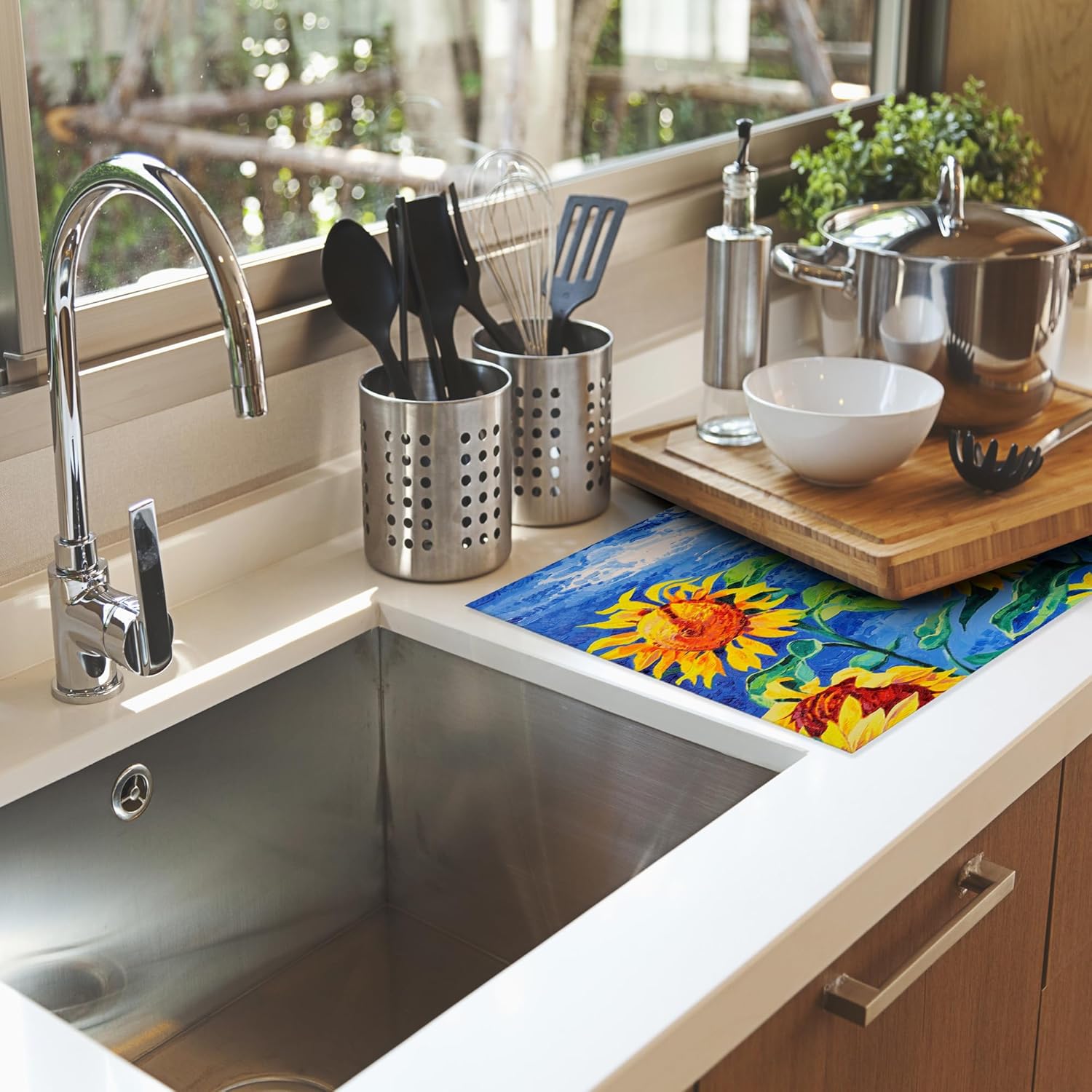 Sunflowers Dish Drying Mat,Modern Art Drying Rack Pad Countertop Dishes Ultra Absorbent Microfiber Kitchen Counter Mat for Coffee Countertop Decor 18x24 Inch