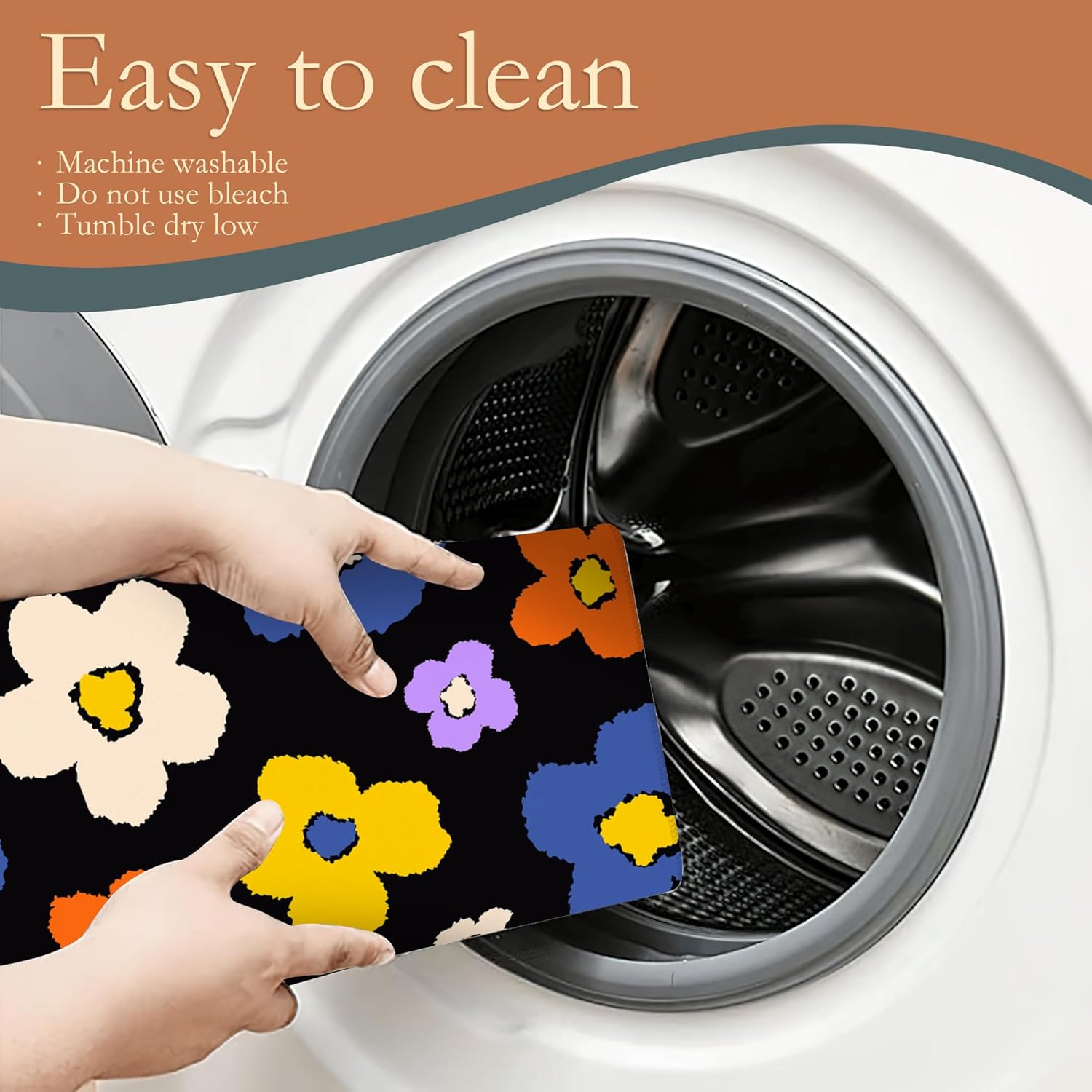Retro Groovy Hippie Boho Dish Drying Rack Mat for Kitchen Counter,Daisy Flower Dish Drying Pad Absorbent Reversible Microfiber Protector for Coffee Bar Sink Countertops 18x24 Inch
