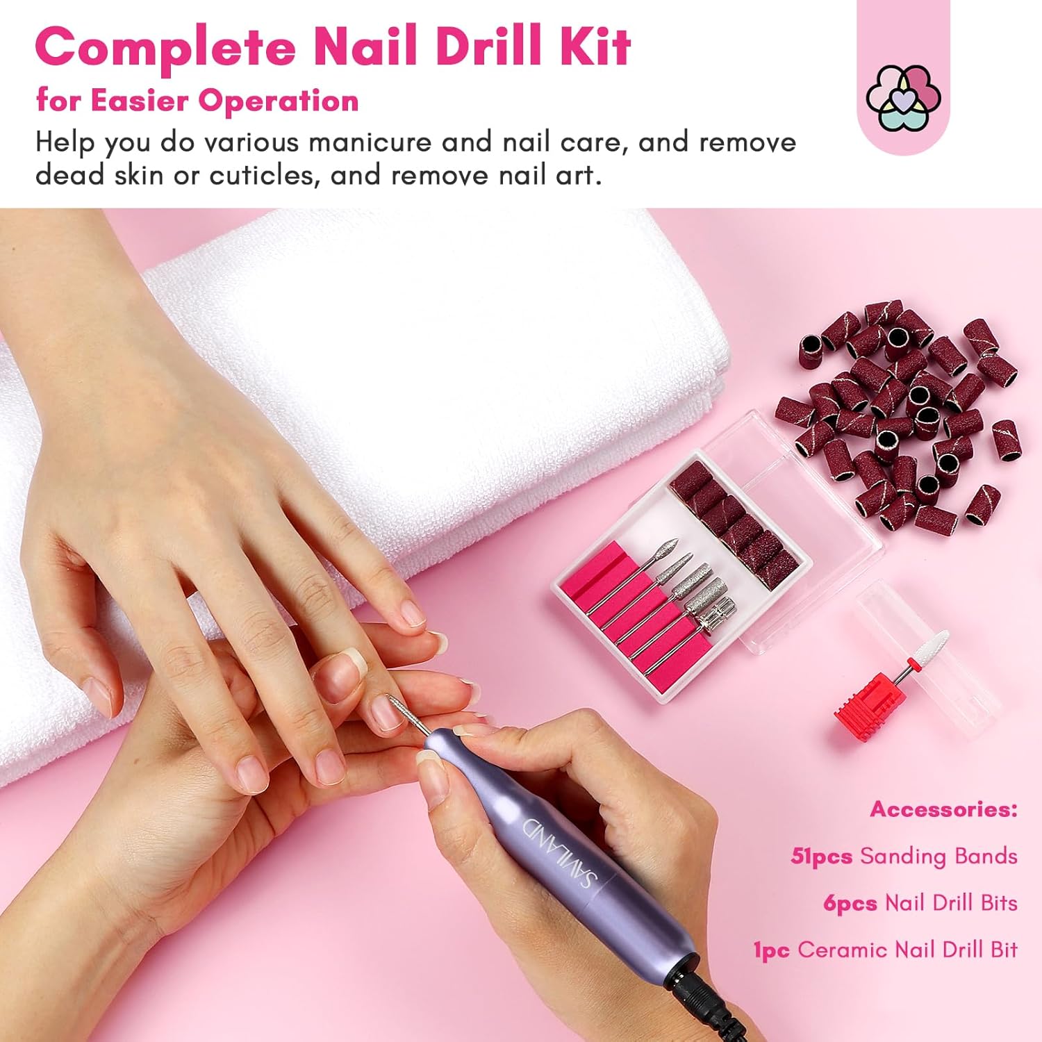 - Nail Drill for A Quick French Manicure: SAVILAND dip nail powder kit starter set contains 6 pcs nail drill bits, 6+45 pcs sanding bands. The nail drill for dips nail professional in this dip powder nail kit can rotate up to 20,000 RPM, Adjustable steering and rotational speed for safe and easy use. Ideal for quick sanding, carving, cutting, polishing, nail removal, dead skin and cuticle removal
