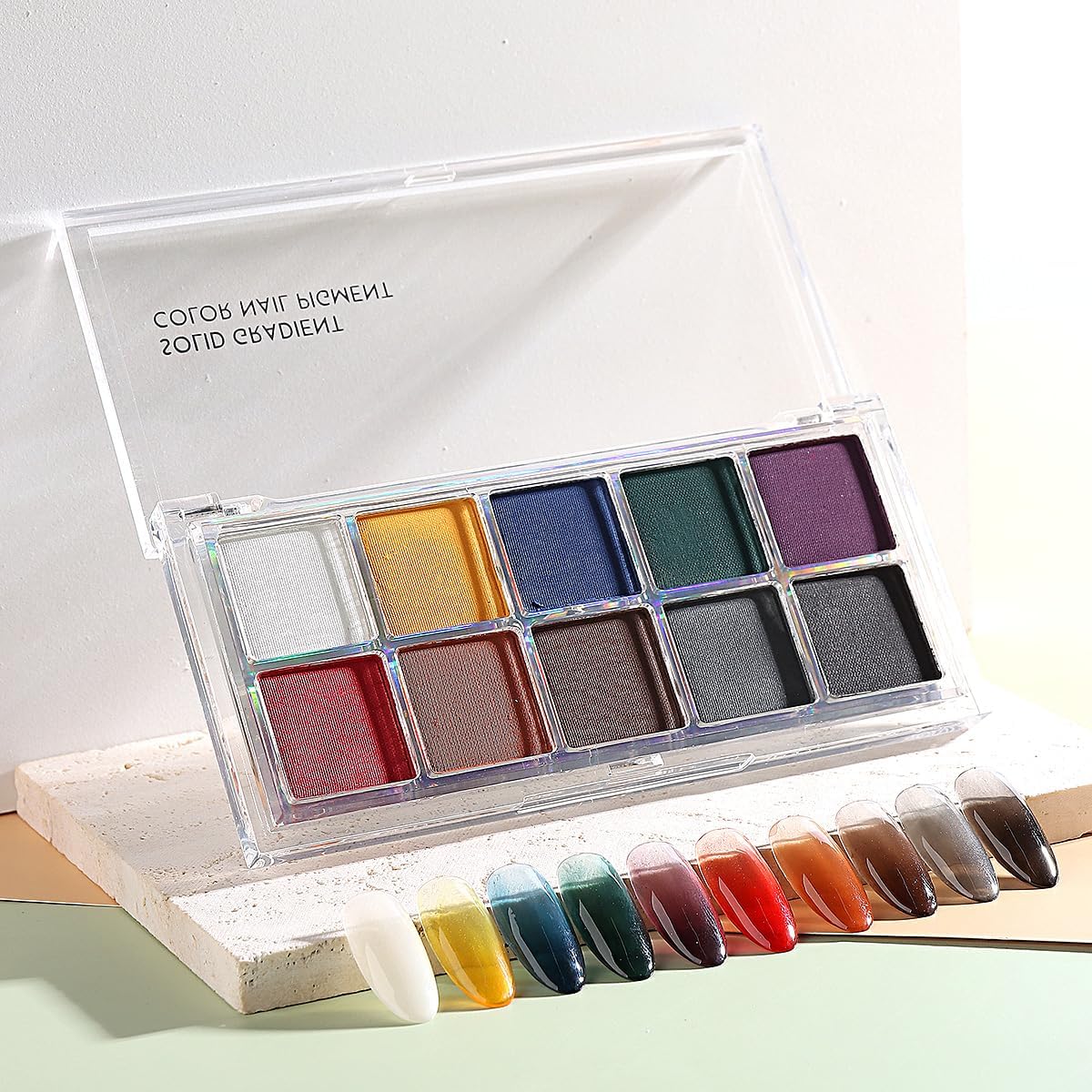 10 Colors Solid Fluorescent Neon Pigment Powder Set Gradient Iridescent Aurora Mermaid Pearl Glitter Dust Kit for Home Salon Nail Art Designs