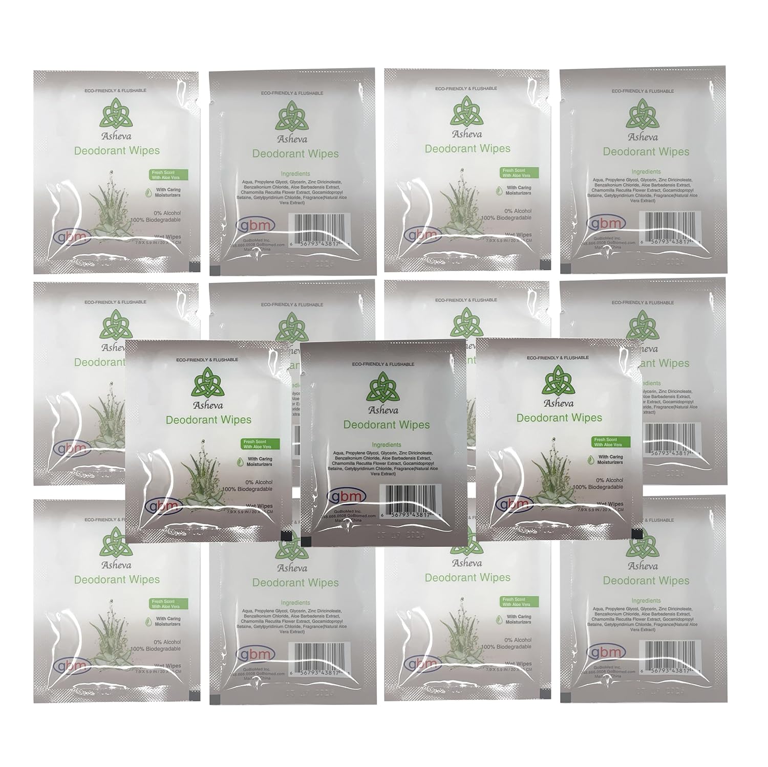 - BIODEGRADABLE - Asheva Deodorant Wipes are designed for adults, with zero waste and eco-friendly materials. These wipes are biodegradable, flushable, and packed with premium ingredients to promote healthy skin.