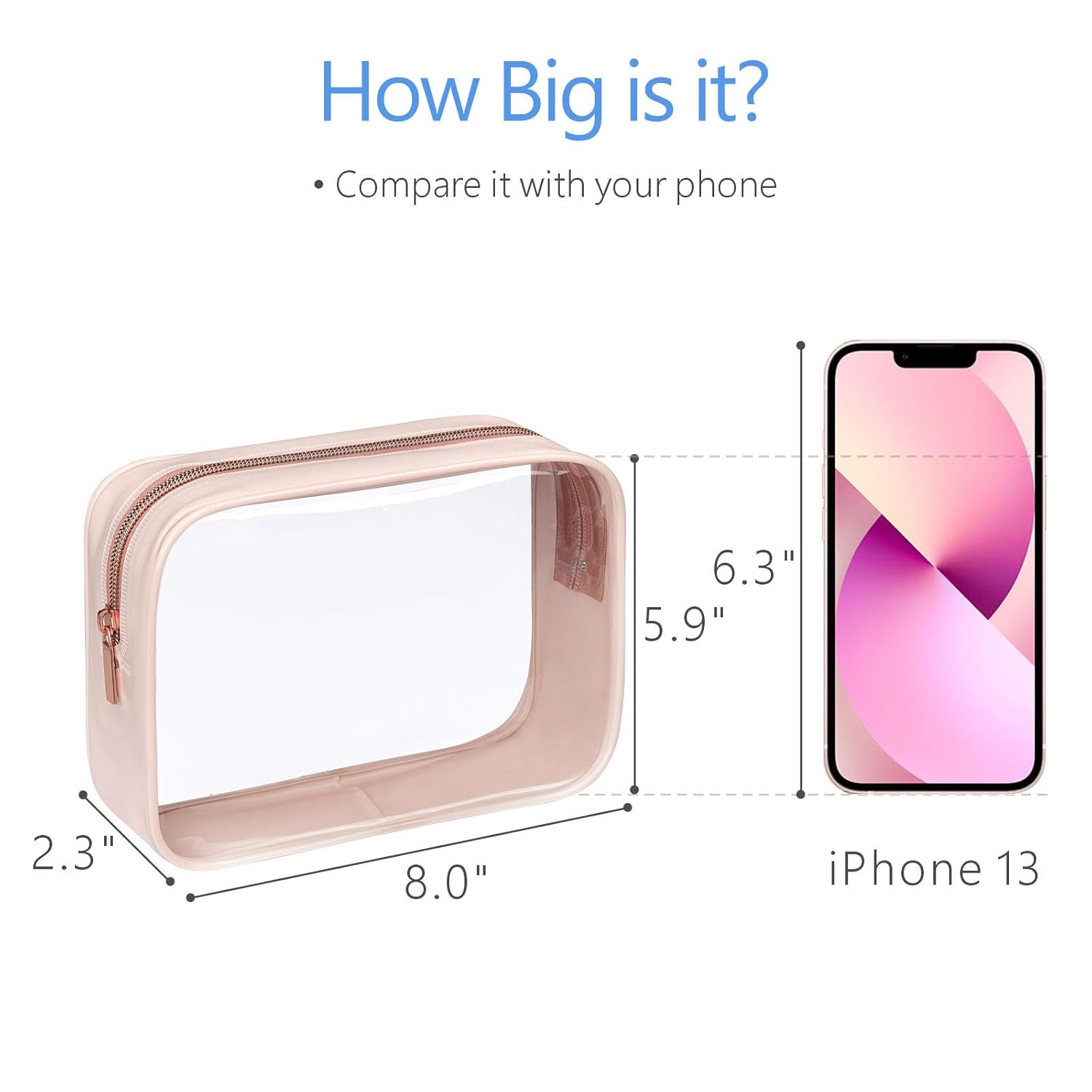 - Lightweight & Perfect Gift for Your Friend: The TSA approved clear makeup bag is less than 1 lb., perfect size to fit in your carry-on luggage for travel or vacations; This practical clear cosmetic bag a best choice as a gift for your friend and family. If you have any quality related problem, please feel free to tell us