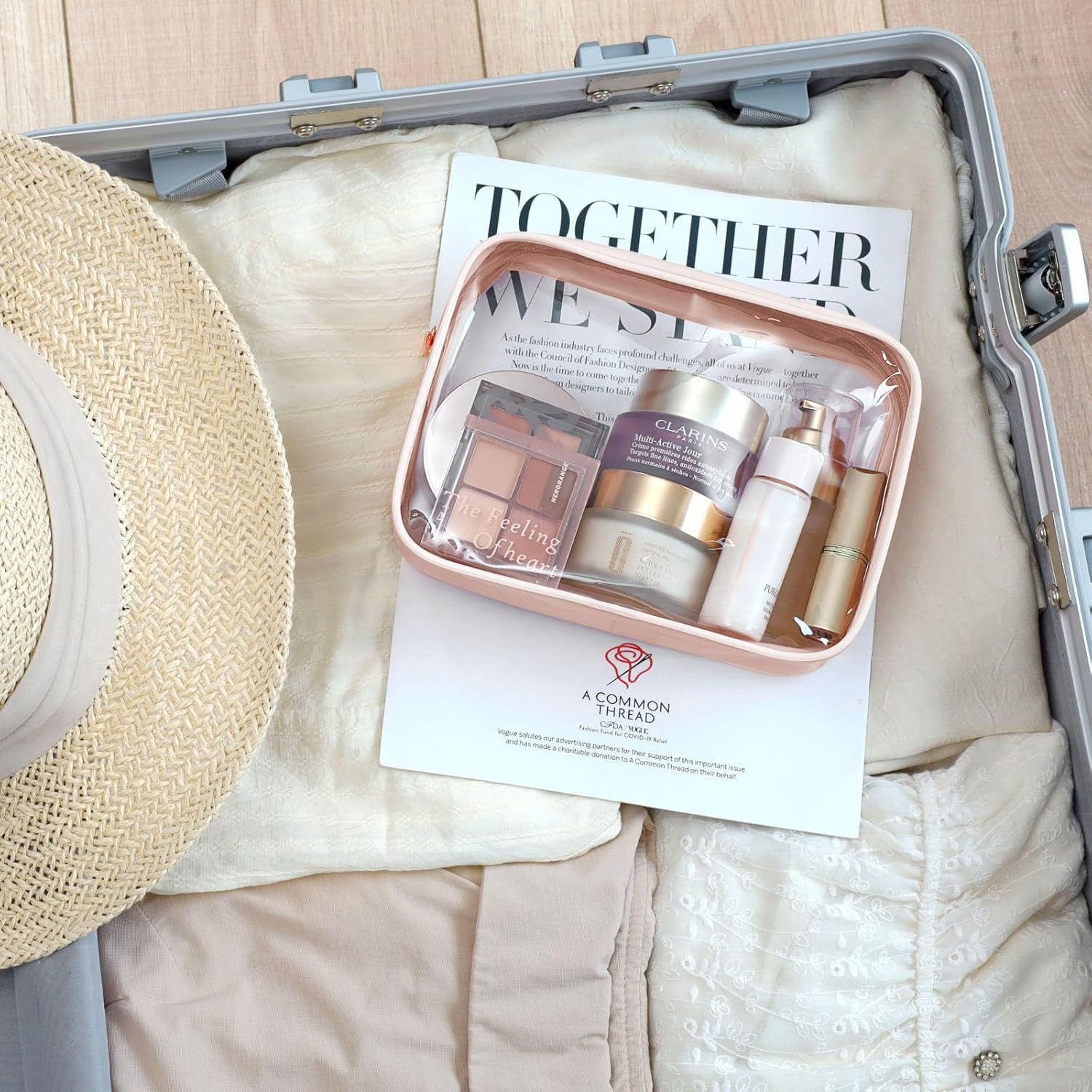 PACKISM TSA Approved Toiletry Bag - Clear Makeup Bag Waterproof Quart Size Bag, Travel Makeup Cosmetic Bag for Women, Carry on Airport Airline Compliant Bag, 3 Pack