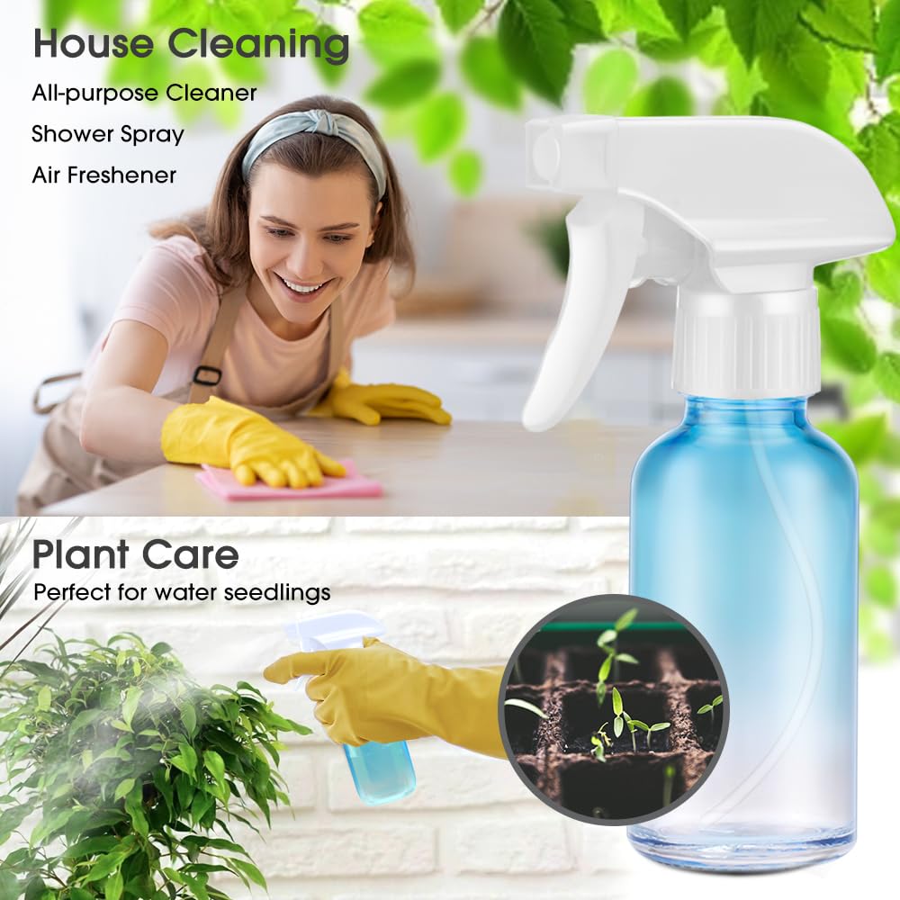 - Multifunctional Squirt Bottle: The glass spray bottle can fill with whatever liquid you want. Perfect for water spray bottle for hair, homemade cleaning solutions, window Cleaners, Aromatherapy Facial Hydration, Watering Flowers, Hair Care, and so on.