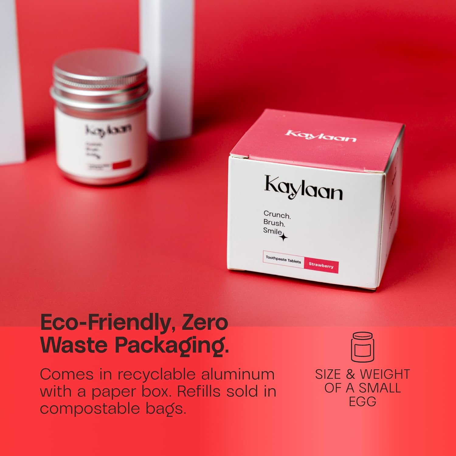 - Chewable, bite-sized tabs: No liquid, no mess! Compact tablets in zero-waste, compostable packaging.