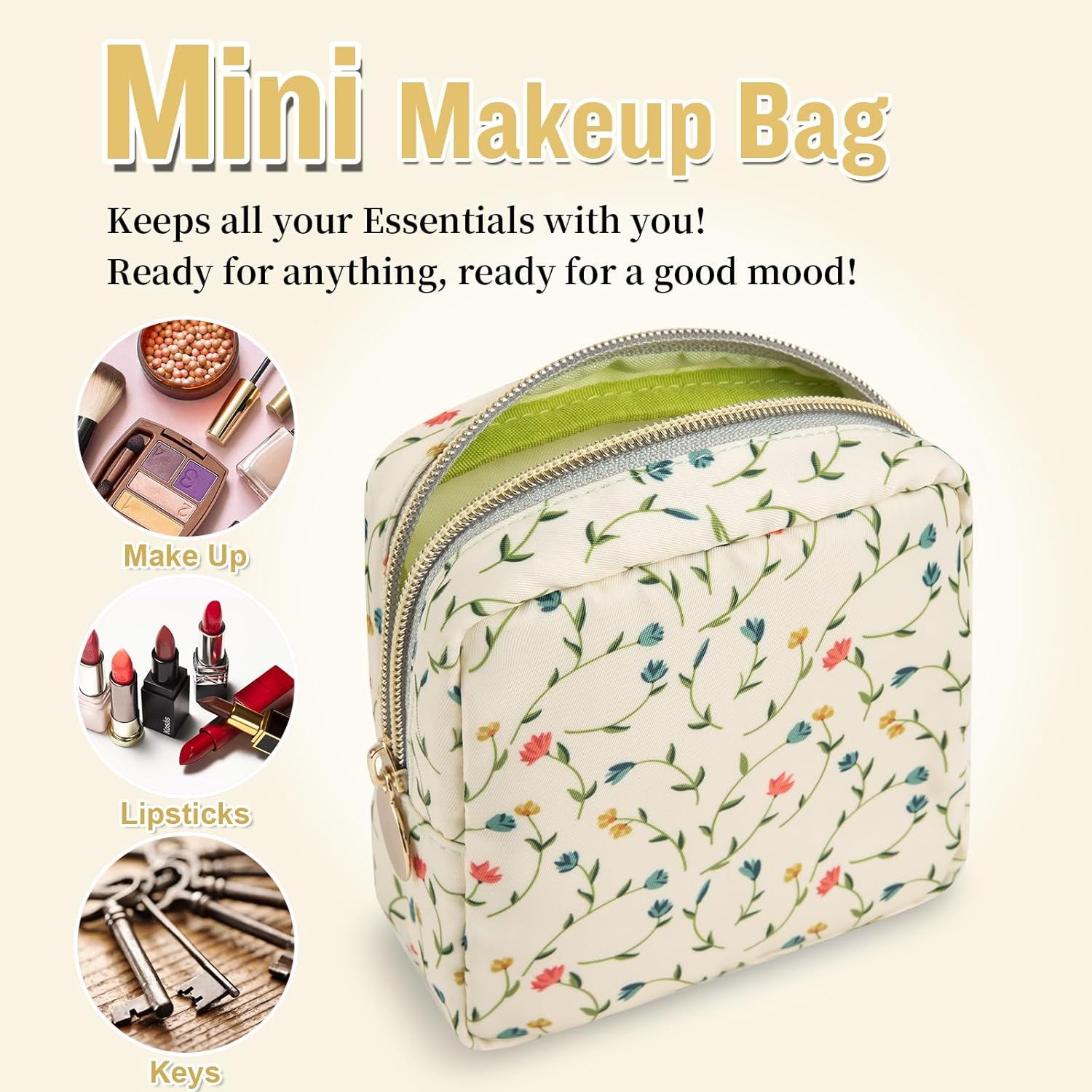 - ❤【Premium Materials】Mini floral makeup bag is made of high-quality nylon waterproof material and durable gold zipper, which does not fade, has no peculiar smell, and is durable. Stylish appearance, easy to wipe clean, dustproof and waterproof. The makeup pouch interior is covered with thick sponge to protect your belongings at all times.
