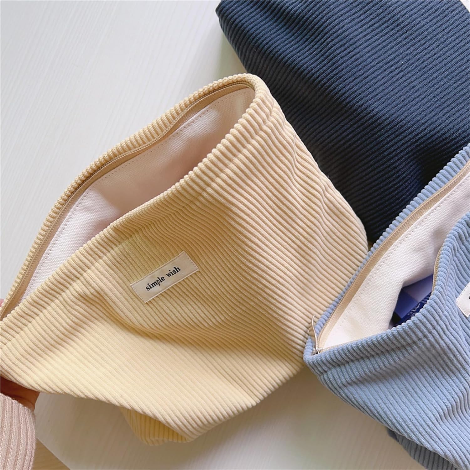 - 【Quality Materials】Our cosmetic bag feature a double-layer design, with an outer layer made of high-quality corduroy fabric and an inner layer made of durable canvas, which is not only durable but also soft to the touch, giving it a luxurious feel.