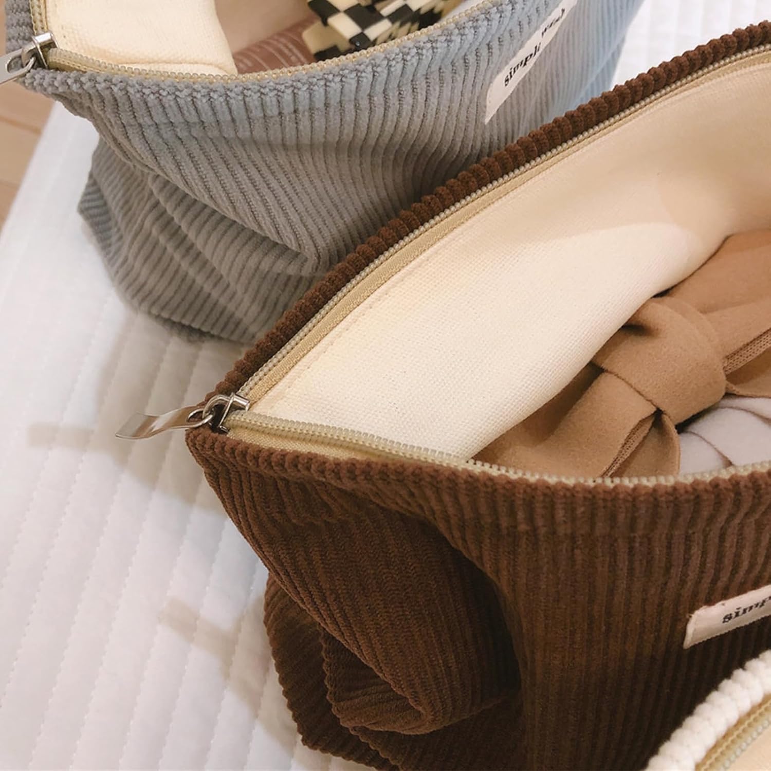 - 【Quality Materials】Our cosmetic bag feature a double-layer design, with an outer layer made of high-quality corduroy fabric and an inner layer made of durable canvas, which is not only durable but also soft to the touch, giving it a luxurious feel.
