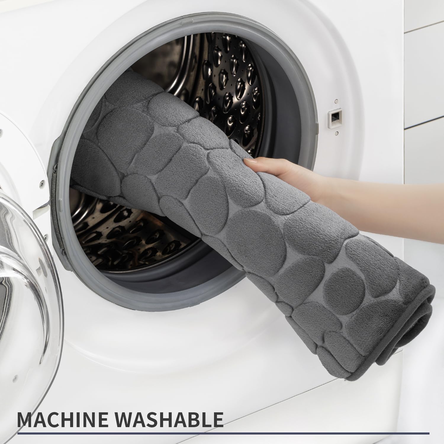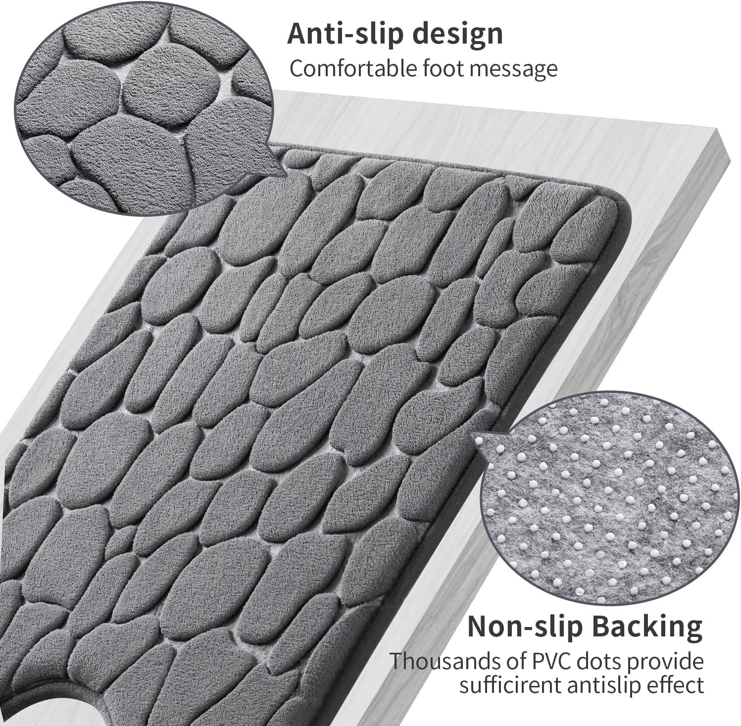 YIHOUSE Memory Foam Bath Mat Cobblestone Bathroom Rugs Super Water Absorbent Bath Mats for Bathroom Machine Washable Bath Rugs(20 x 24,Dark Gray)