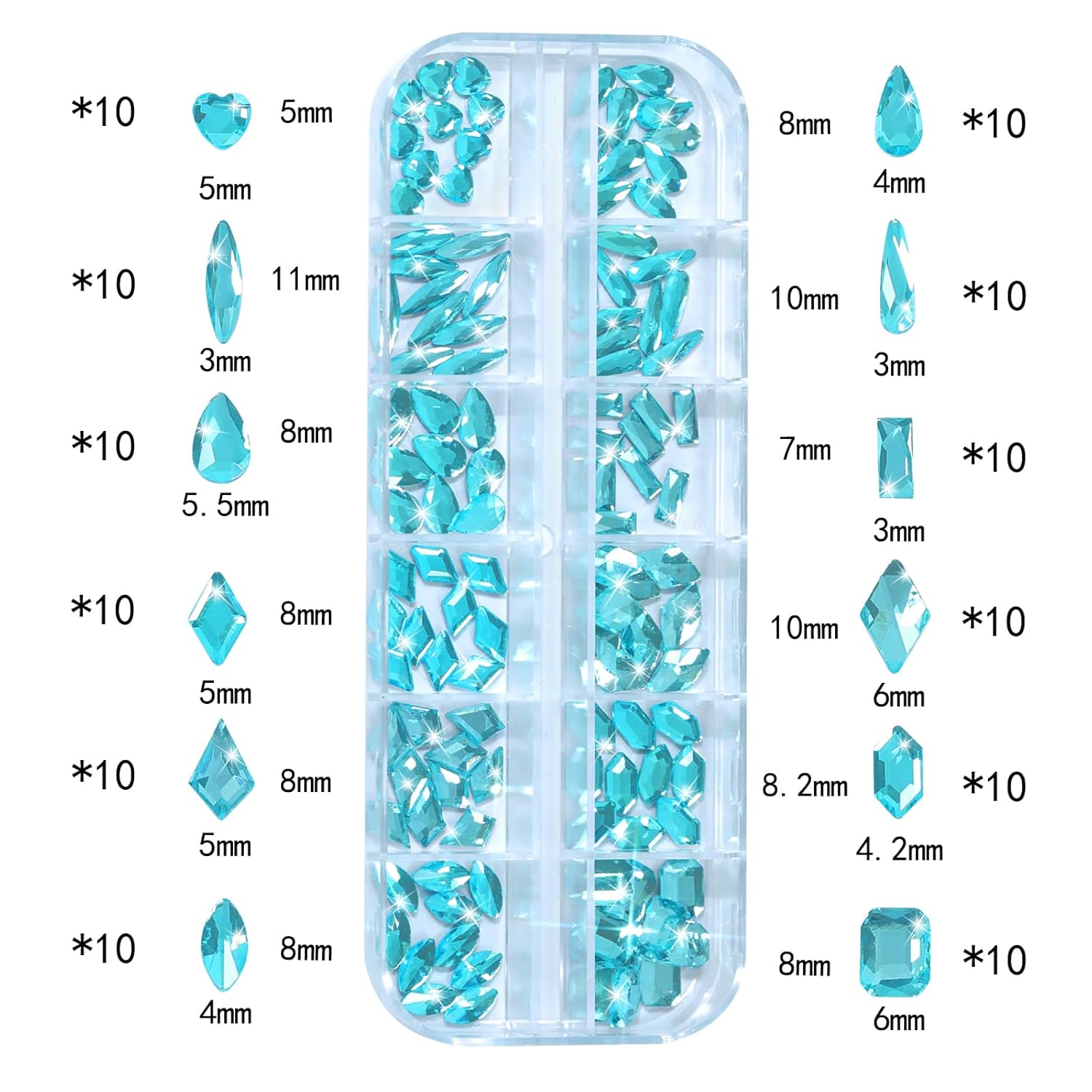 - ★Multi shaped rhinestones - Bling lake blue nail rhinestones Is made of high-quality glass and has delicate and exquisite Shine is very hard and not easily break. the crystal aquamarine coating Is bonded firmly to the outer surface of each crystal bead with durable sparkling and brightness crystal rhinestones gems, embedded with durable and sparkling crystal diamonds rhinestones in shapes including water droplets, hearts, rhombus, trapezoids, horse eyes, arrows, rectangles, etc