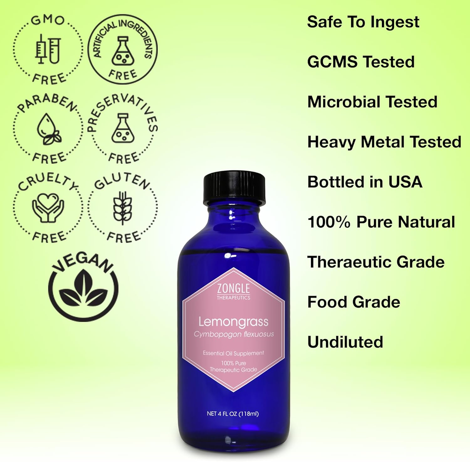 - Sourced from Natural Lemongrass – Zongle Therapeutics ensures the highest standards by using only the finest natural lemongrass, extracted without harmful solvents.
