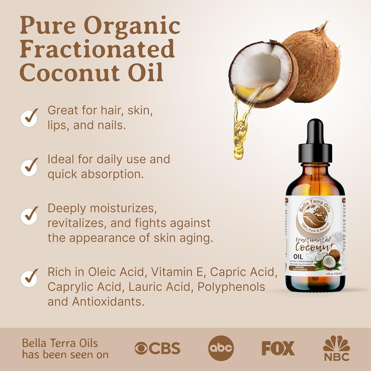 Bella Terra Oils Fractionated Coconut Oil (MCT Oil) – 1gallon, Deeply Hydrating and Nourishing, Non-Greasy, For Hair & Skin