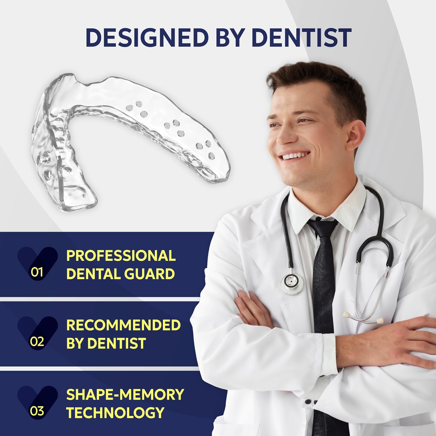 - ✔Enhanced Airflow for Better Sleep: Equipped with 18 strategically placed holes, this mouth guard for grinding teeth at night greatly enhances breathability, reducing the sensation of stuffiness and combating dry mouth. Breathe freely, sleep soundly, and wake up refreshed.