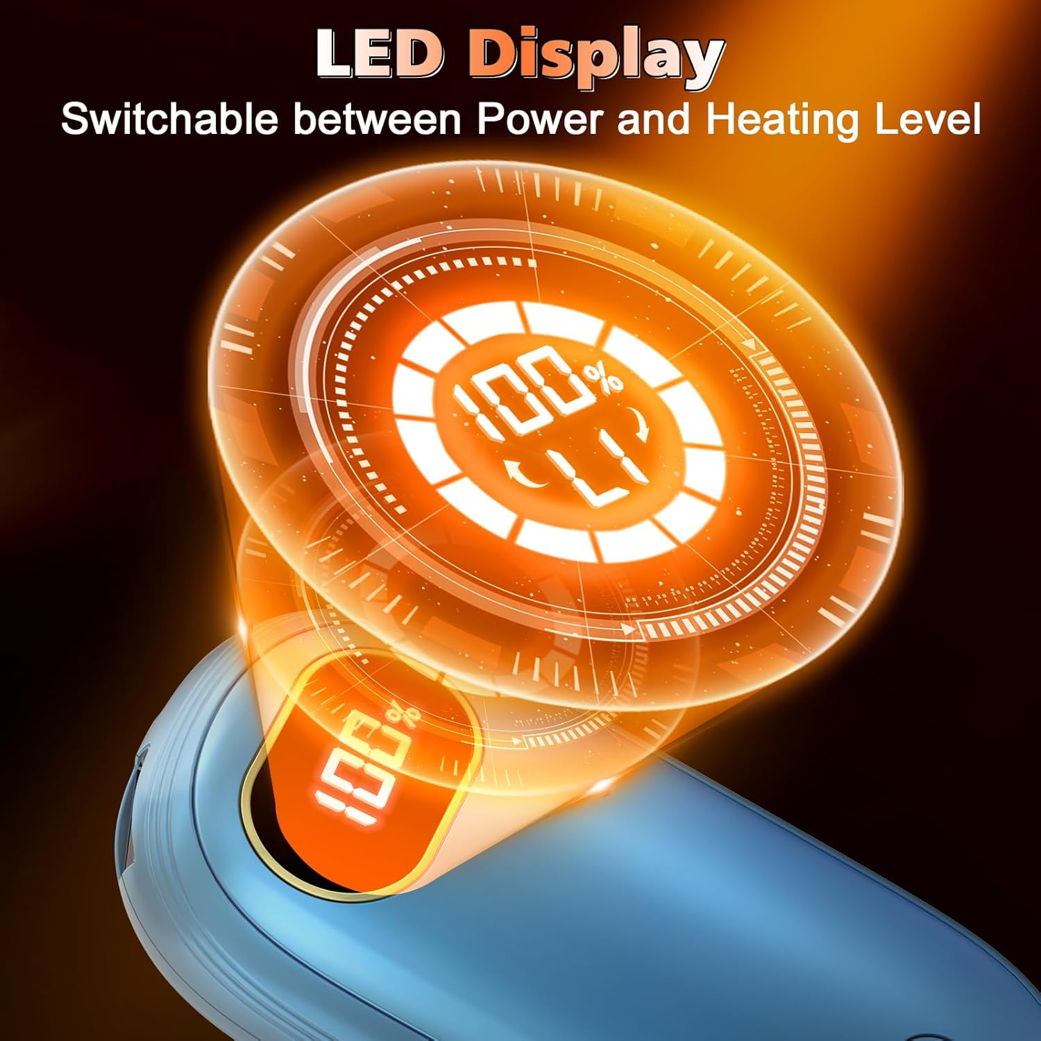 - 【Rechargeable Hand Warmers 2 Pack with LED Display】 Electric hand warmers built-in with LED display to displays remaining power that relieve the anxiety caused by low battery. It also displays the heating levels. The hand warmers reusable has 8 heating modes with 4 heating levels heat up to 131℉. L1/L2/L3/L4 for single-sided heating. H1/H2/H3/H4 for double-sided heating.