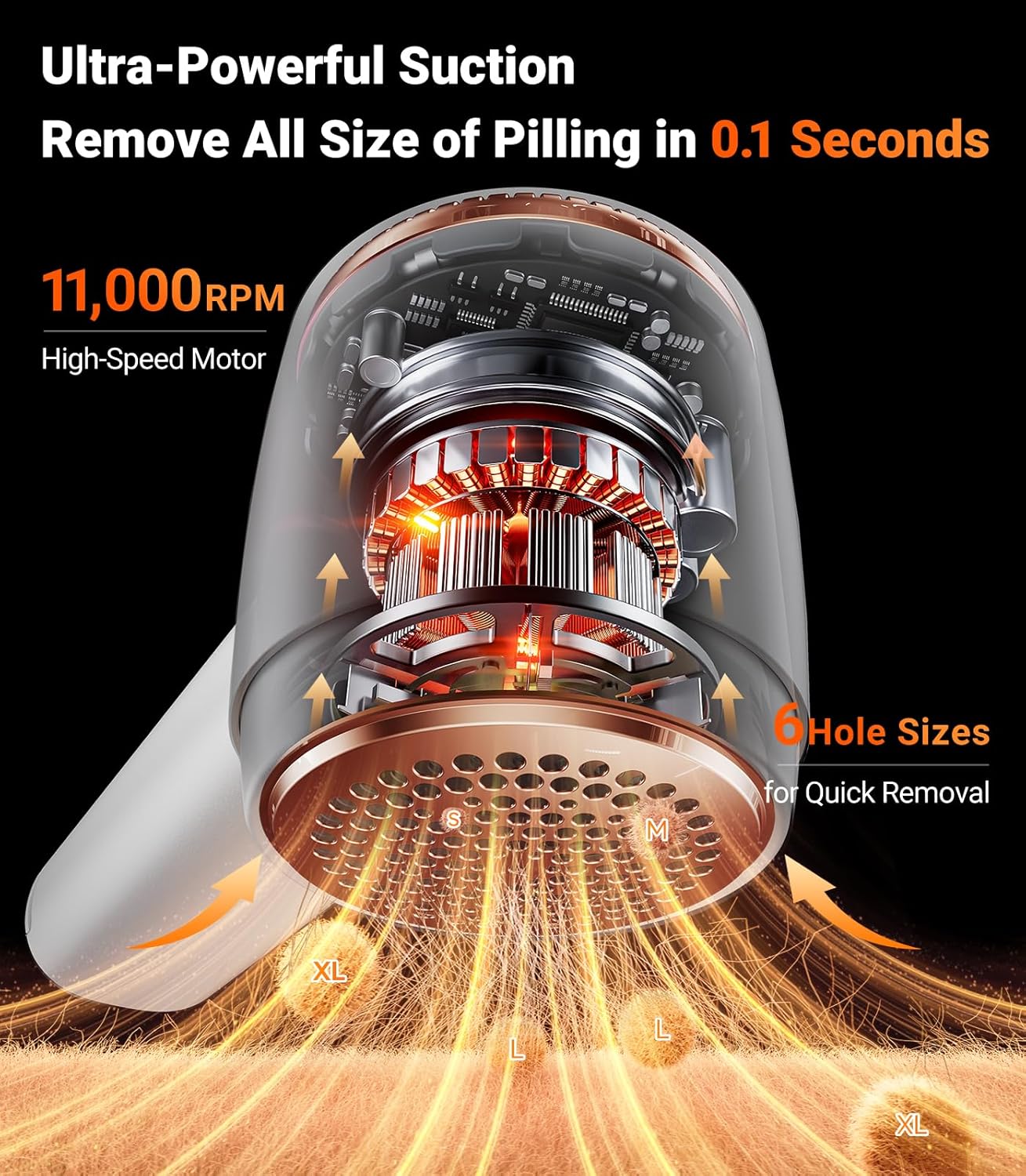 - ✂️ [12 Times Removal Efficiency] Cleaning A sweater only takes ONE minute with TORRAS rechargeable fabric shaver. The turbine design increases the suction power of lint by 2 times. Six 45° blades increase the cutting efficiency by 3 times. The 11000 RPM motor doubled the cleaning speed. Each electric lint remover rechargeable contains numerous exquisite designs.