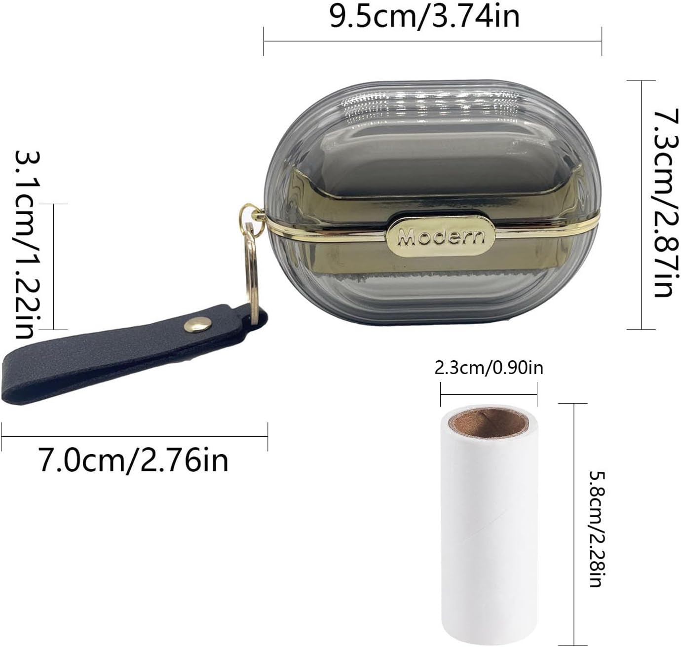 - Package include:A gray lint roller with a hand strap, and six replacement paper cores.