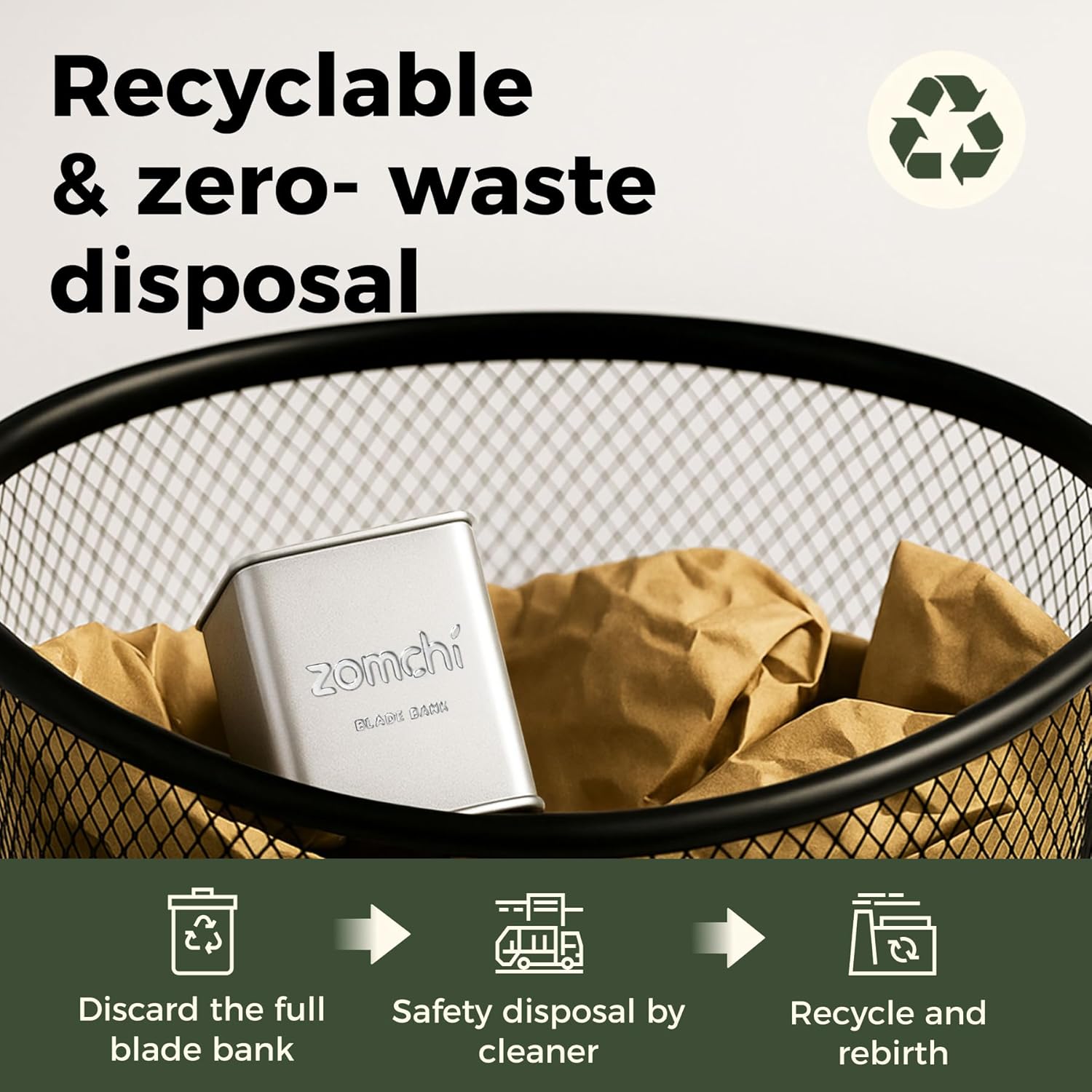 - PROBLEM SOLVED: This blades disposal case comes out, perfectly resolve their puzzlements of abandon the used blades. Find your double edge blades a safety home rather than let them disposed of soil, water, any place that they will hurt creatures alive. Let them go into the new home — the Zomchi blade bank. After scientific recycled, they will refresh a new life like a Phoenix from the Ashes.