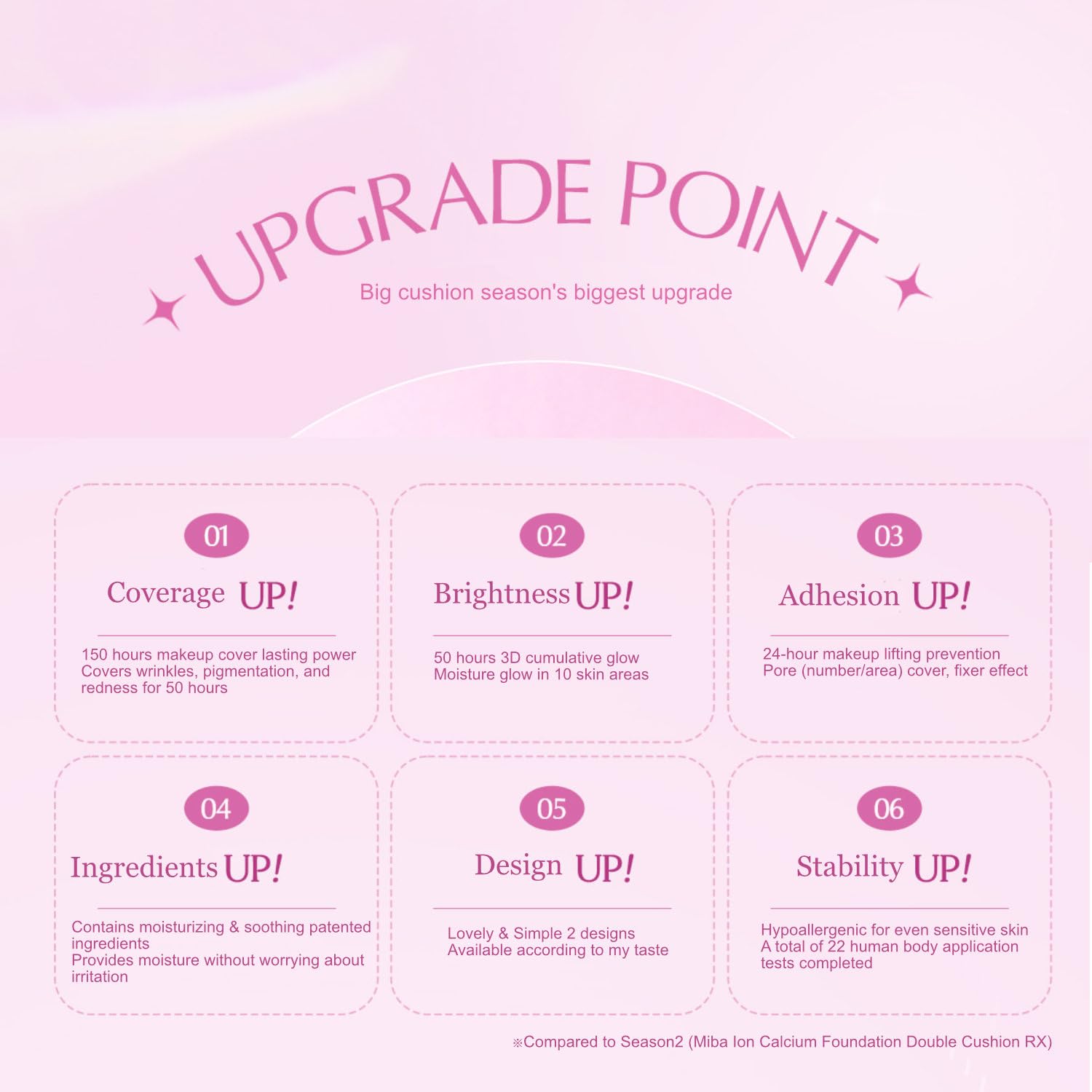 MIBA Ion Calcium Foundation Double Cushion Glow 25 g / 0.88 oz Big Cushion SEASON 3. Long Lasting Cover Effect. Moisture glow. Skin tightening relief. Smooth adhesion. (Lovely #23 Rosy Beige)