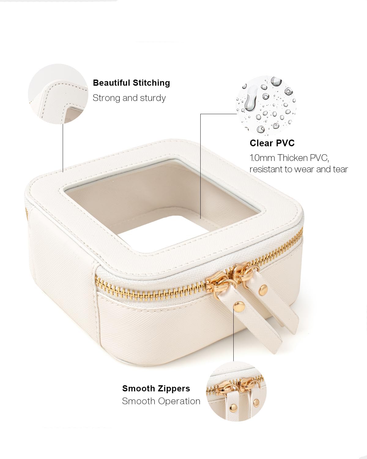 • Small and Clear Design: You will get 1PCS small minimalist boxy shape travel makeup bag which is sleek and minimalistic look for your makeup accessories collection. And is designed with a transparent PVC window,all items are clear at a glance, and you can quickly choose the cosmetics you need.Portable and lightweight Slip it into your purse, backpack, everyday tote or travelling bag for easy access to your must-have items. Size:5.1'' x 4.8''x 2''