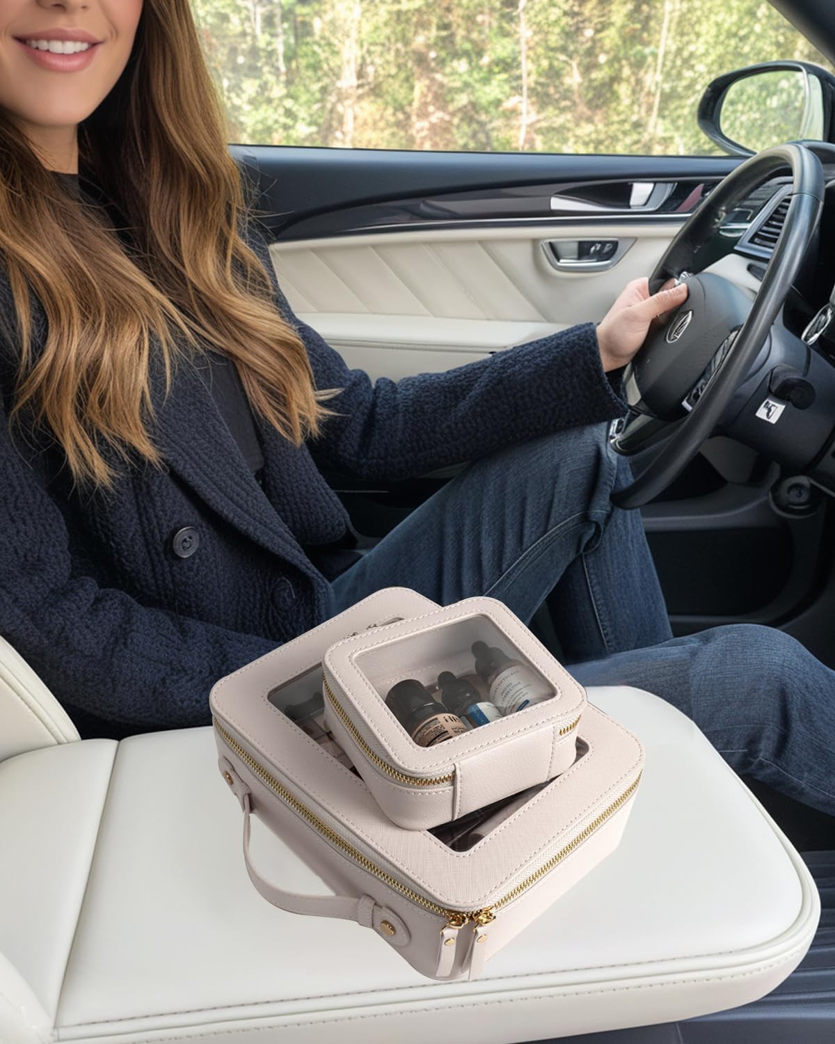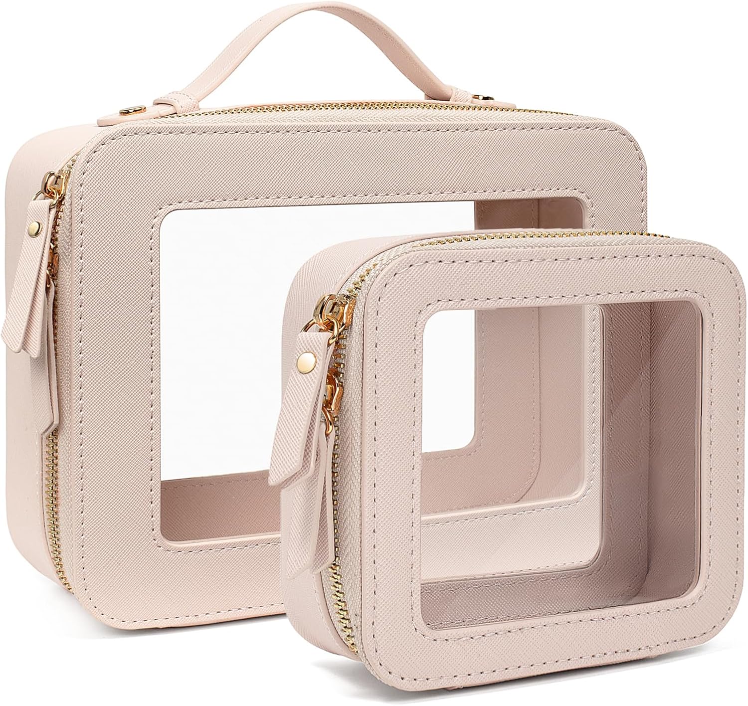 Travel Clear Makeup Bag Set, TSA Approved Cosmetic Bag Case with Zipper Portable Makeup Pouch Toiletry Bag Women Traveling Cosmetic Organizer Storage Bag Car Organizer Car Essentials for Women