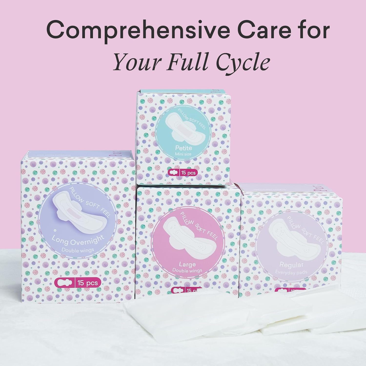 - Size Variety Galore: Purcomfy offers a diverse range of options! Alongside the 11.22-inch large size pads, we also have the 7.5-inch Petite Mini Size pads, 9.45-inch regular size pads, and the grand 13.78-inch Overnight size pads—essential tween pads and school must-haves for teen girls—catering to different needs. Whether it's day or night, whether you're active, studying, going out, or sleeping like a queen, our sanitary pads provide you with the best support.