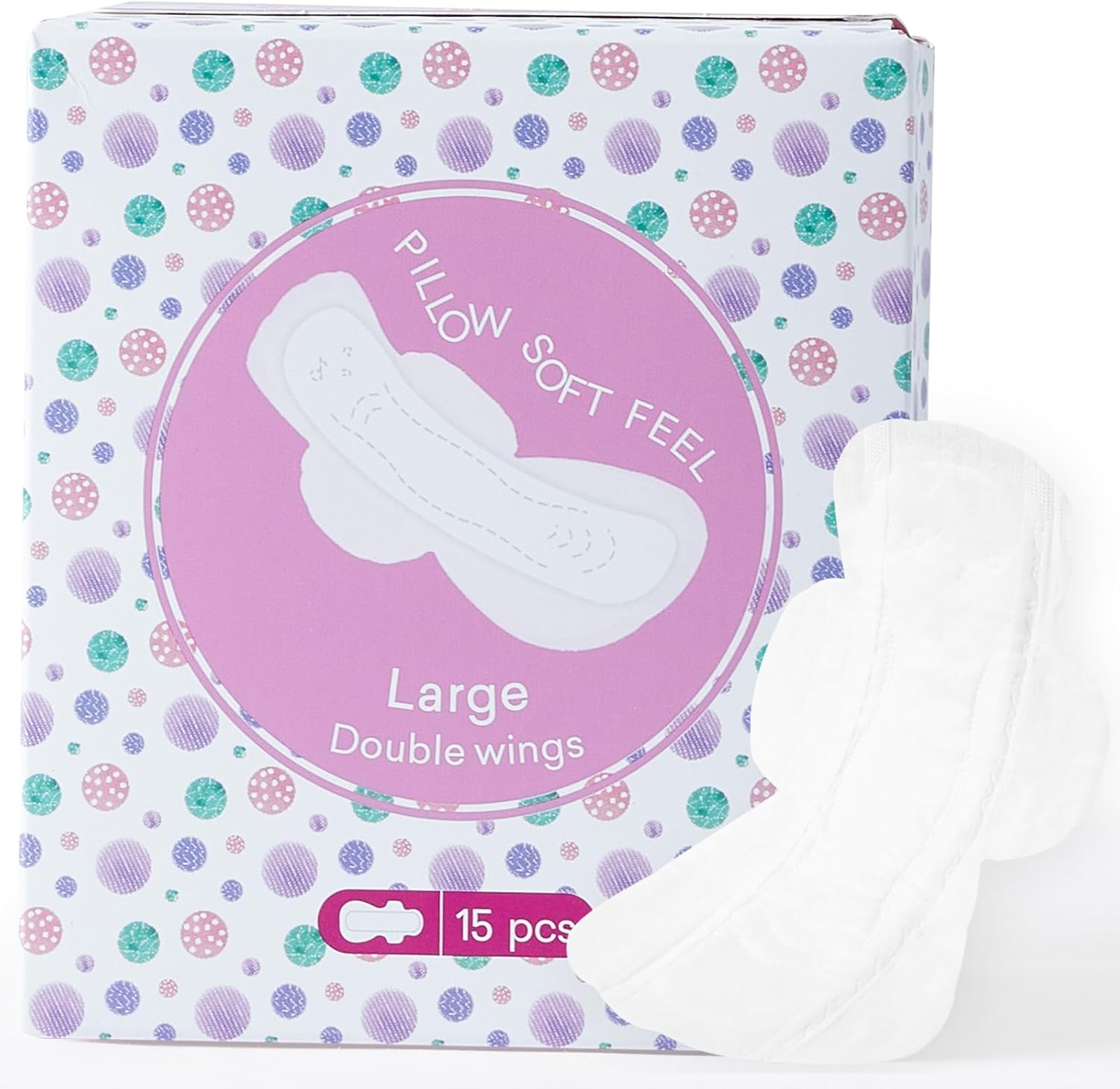 Teens Maxi Period Pads with Wings for Tweens, Organic Cotton Sanitary Pads for Teens Girls 9-14, Teen Large, 15 CT