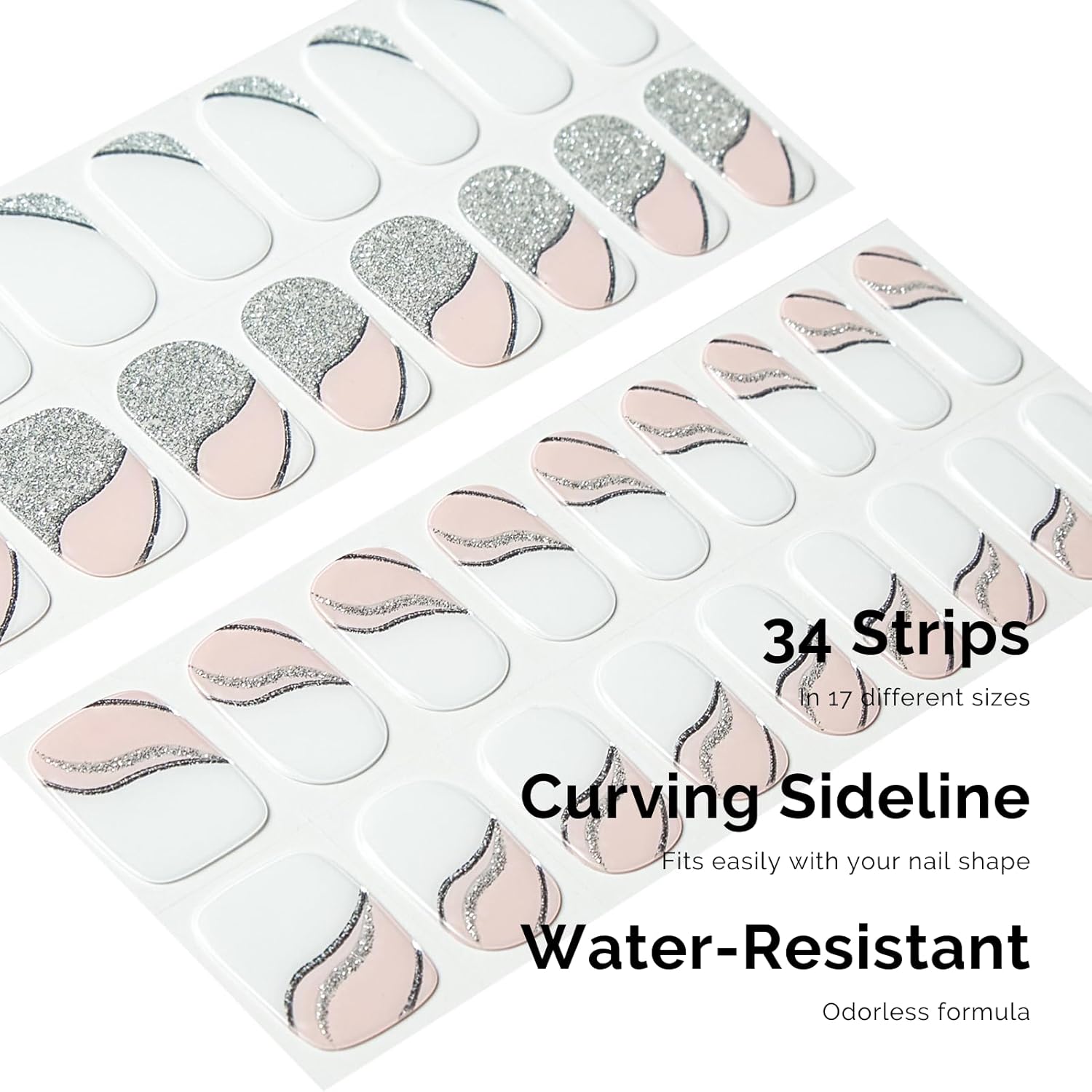 NAILOG Semi Cured Gel Nail Strips 34 pcs| Buy 2 Get 1 UV Lamp | Long Lasting Nail Polish Sticker Wraps with Glossy Gel Finish, Be with You