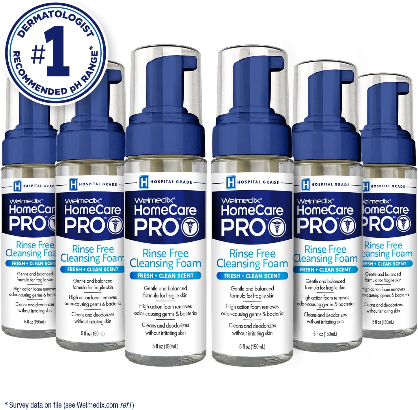 Rinse Free Cleansing Foam, 3 in 1 Body Wash, Shampoo and Personal Cleanser for Elderly, Incontinence and Infant Care, Hospital Grade, Sulfate Free, Paraben Free (Pack of 6)