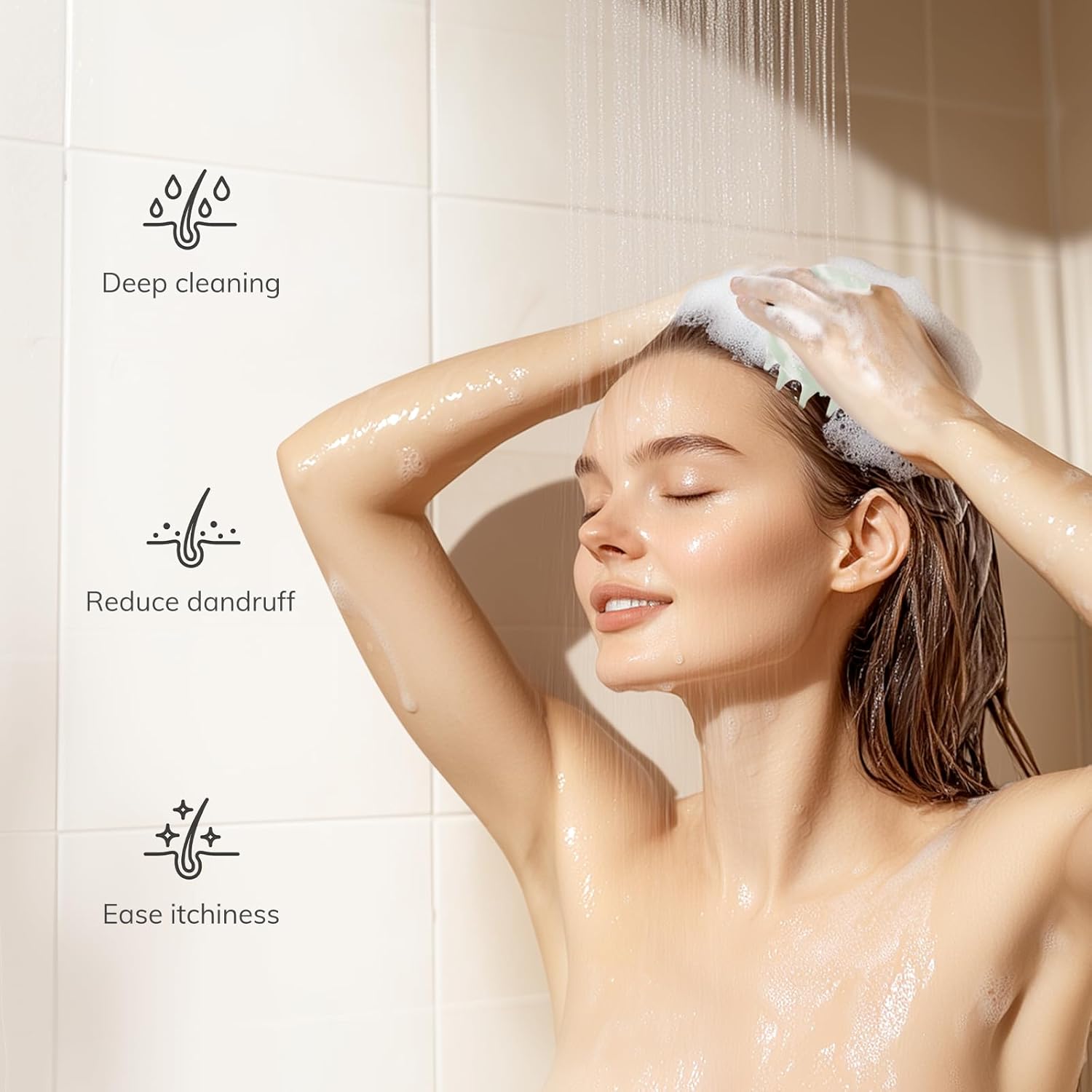 - Long Bristles for Deep Cleaning: The scalp scrubber has one-inch long silicone bristles that easily penetrate thick hair and distribute shampoo evenly. It is easier to create a rich lather than using your hands, and can help you gently remove dandruff and buildup from your scalp