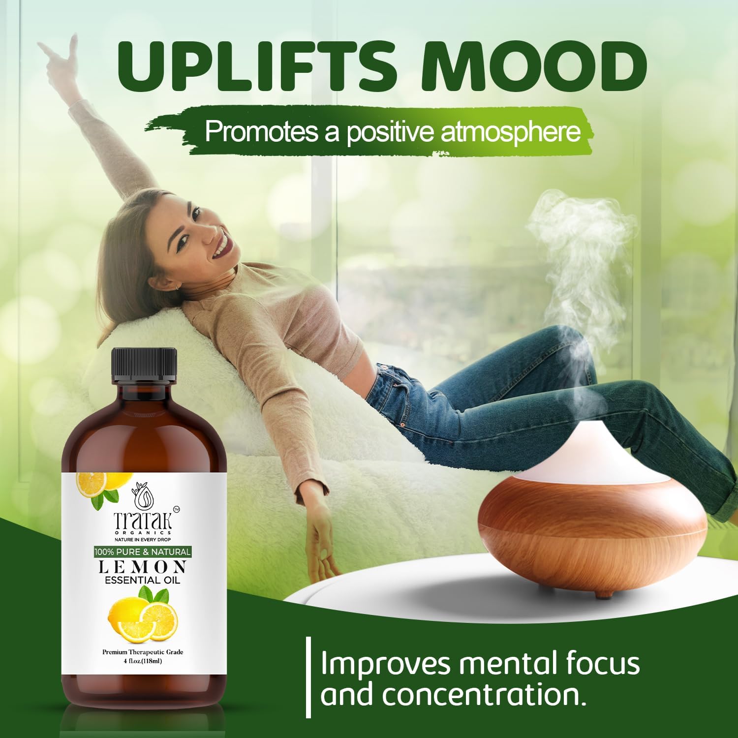 - PACKAGE INCLUDES: Pack of 1 Tratak Lemon Essential Oil with dropper, Net Weight: 4 Fl Oz