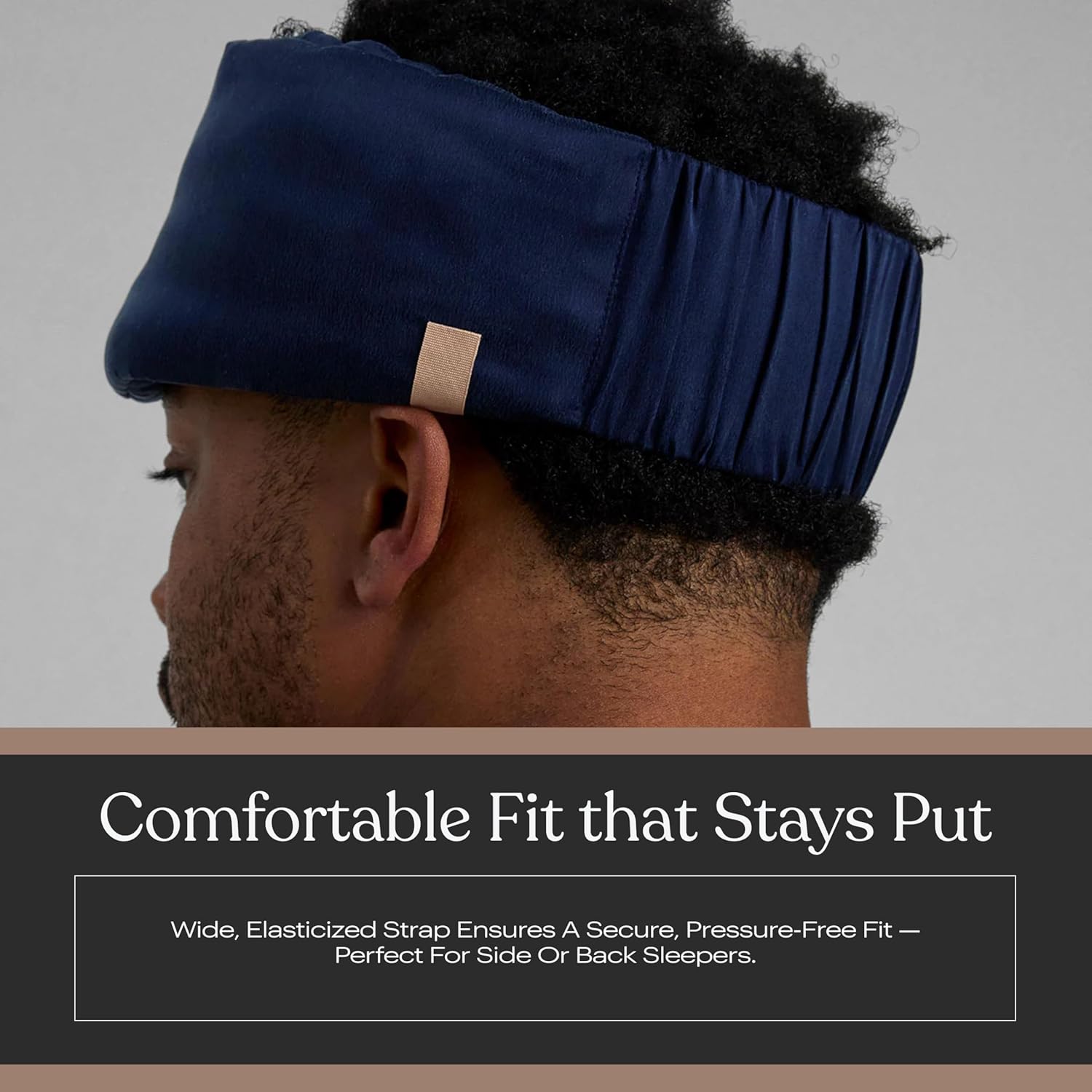 Lunya Sleep Mask with Box - Washable Silk Sleeping Mask and Headband for Beauty Routines - Thermoregulating Comfort for Restful Nights - Silk Eye Mask for Women - Large - Deep Blue