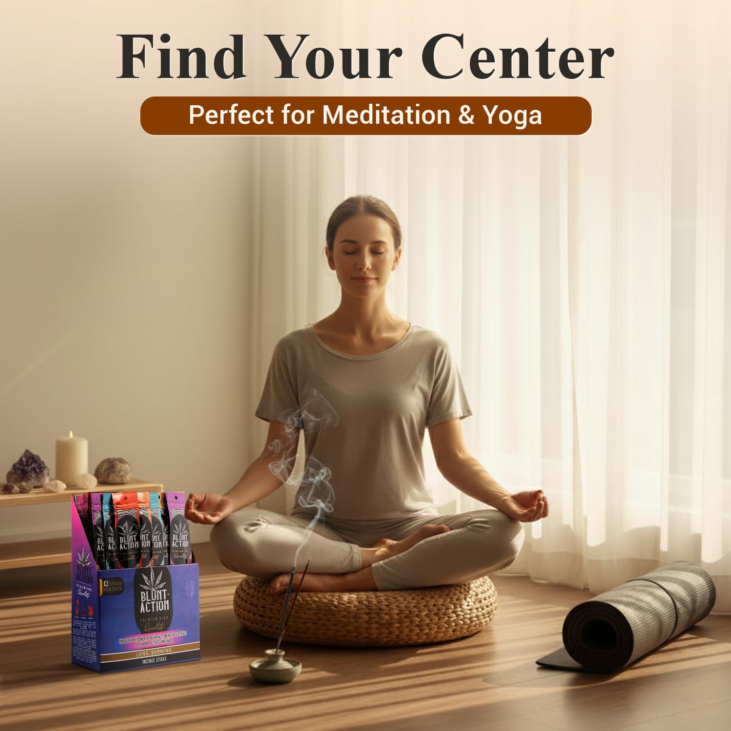 - SET INCLUDES: 144 incense sticks (12 x 12 Pc). This Tulasi Blunt Action Incense Stick Pack includes 12 different fragrances boxes, each pack contains 12 sticks. Enjoy long-lasting fragrance with this pack of 12 Incense Sticks, perfect for daily rituals or gifting.