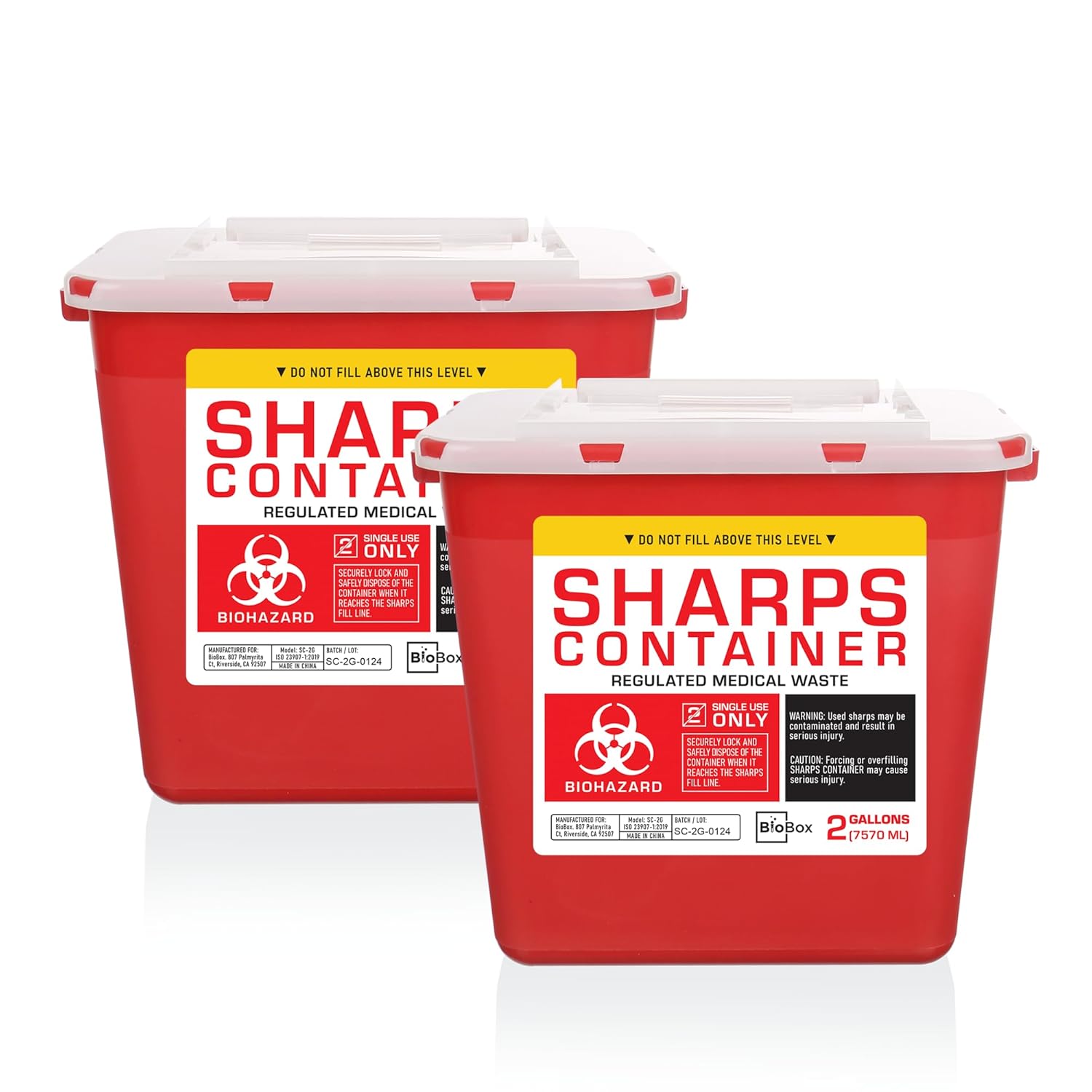 Sharps Container Large - Sharps Containers for Home Use and Labs - Portable Needle Disposal and Travel Size Biohazard Bin - 2 Gallon (Pack of 2)