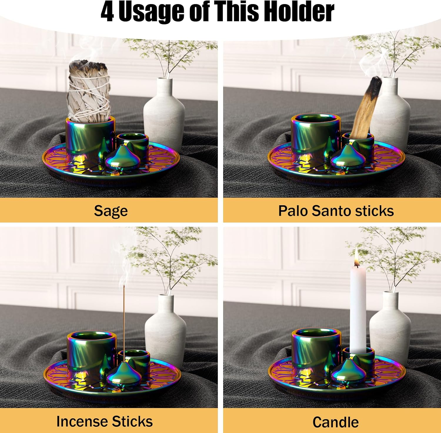 Palo Santo Holder - 4 in 1 Incense & Candle Holder - Ceramic Incense Holder Ash Catcher Tray for Meditation Room - Easy to Clean