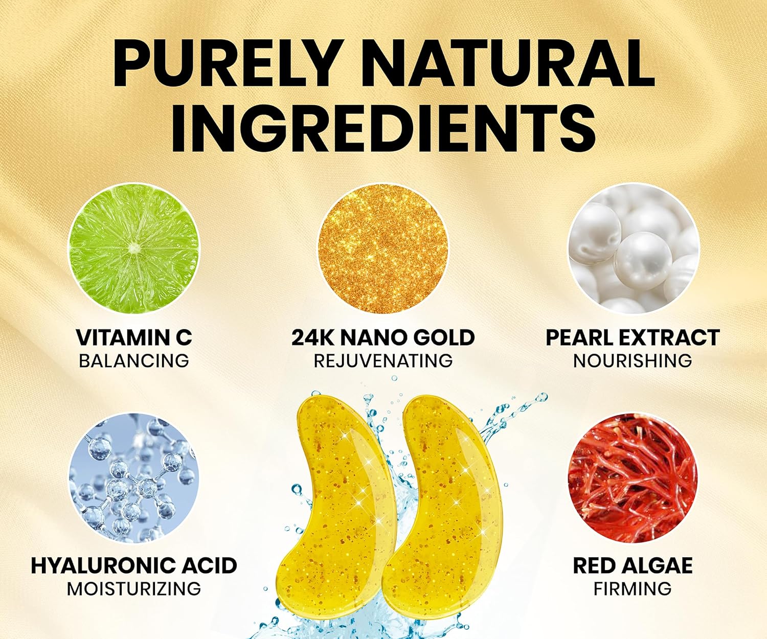 - BEAUTY REST IN A BOX: Visually refresh tired, puffy eyes and look wide awake thanks to your gold eye patches for puffy eyes. Lock in moisture and maximize the hydrating effects of vitamin c and hyaluronic acid. Care for your skin with face masks skincare.