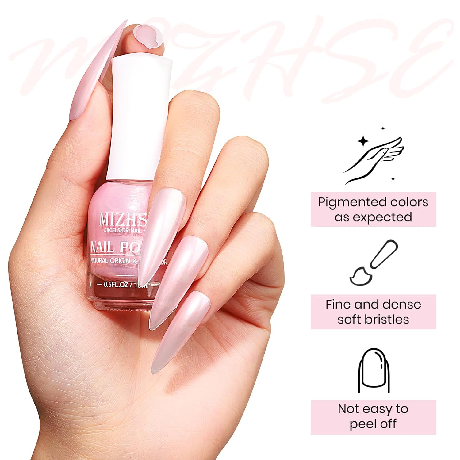 - Fast Dry - Get Out the Door Quickly: Say goodbye to nail lamps with MIZHSE's mermaid pearl nail polish set. Quick dry nail polish reduces complex tools and waiting time that can get desired nail beauty conveniently and efficiently. Experience instant drying time, making it a perfect choice for people on the go.