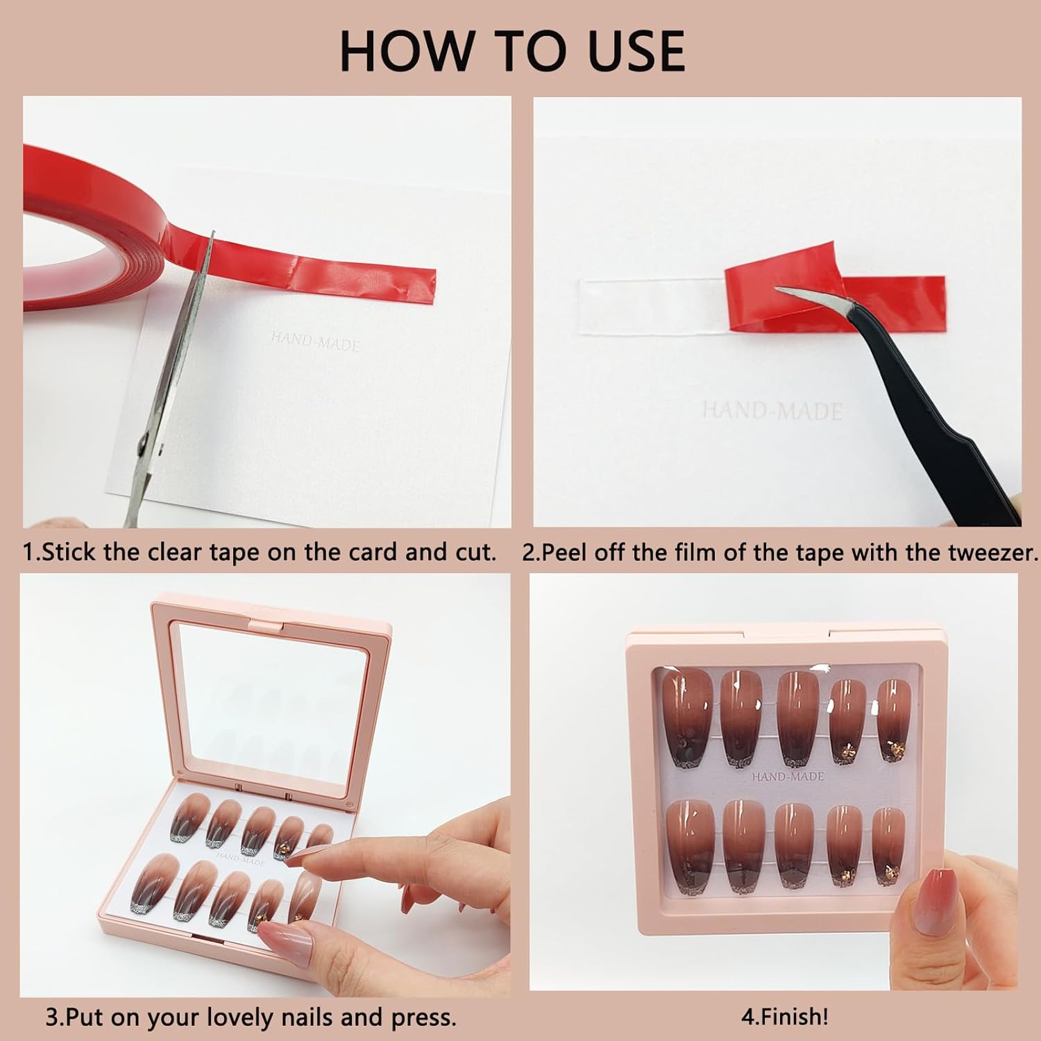 - 💅💅【Easy to Use】-- You can easily cut it to any size and length, allowing you to freely display your nail art on packaging boxes or bags. With the Tweezer, you will find it easy to peel off the film. Try our premium double sided tape for all your nail art and display needs.
